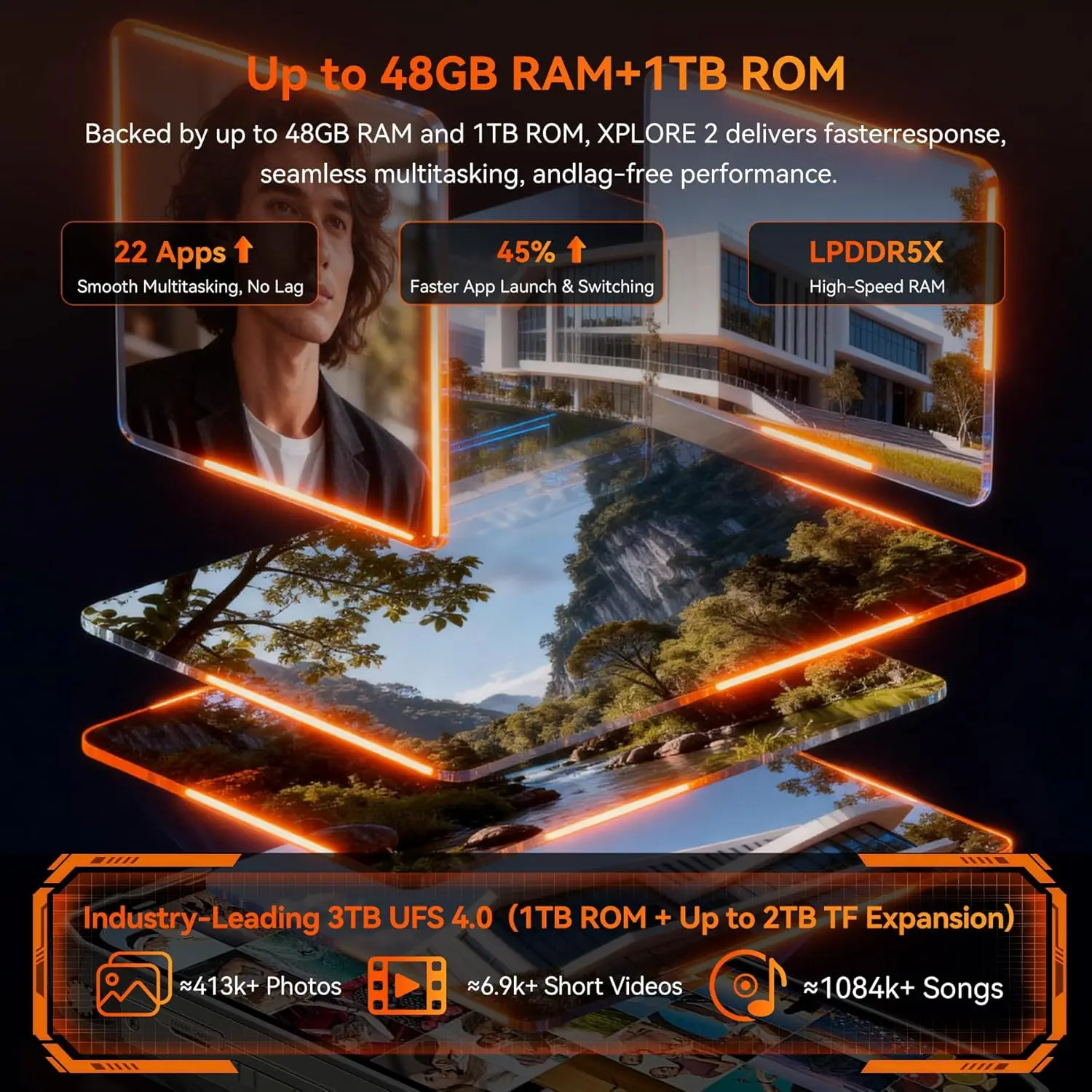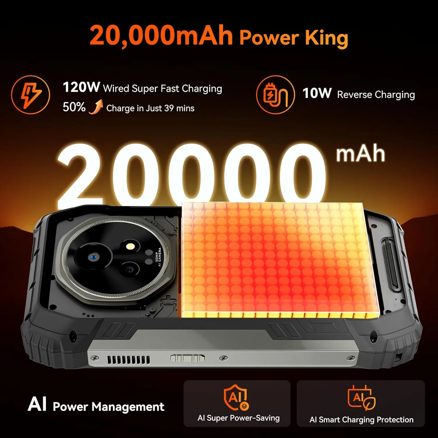 Blackview XPLORE 2 Dimensity 8300 AI 5G Rugged Phone Android 15, 20000mAh Battery 48GB+1TB, 6.73'' 3.2K Outdoor Mobile Phones