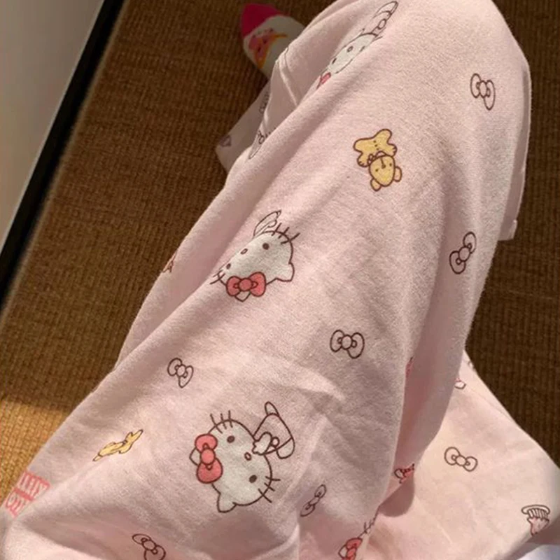 Sanrio HelloKitty Summer Sleeping Pants for Women, Cute Kitten, Loose Thin, High Waist Casual Pants, Essential for Home Use
