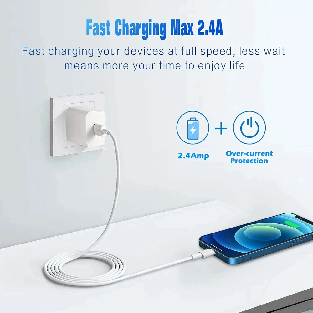 1/2 PCS USB Cable MFI certified for iPhone Charger Cord USB to Ligtning Chargers Cable for iPhone 14 Fast iPhone Charging Cable