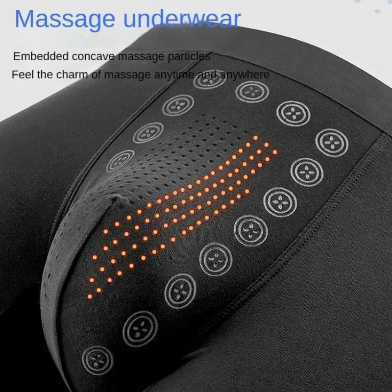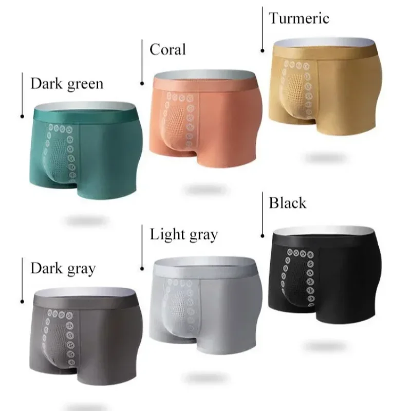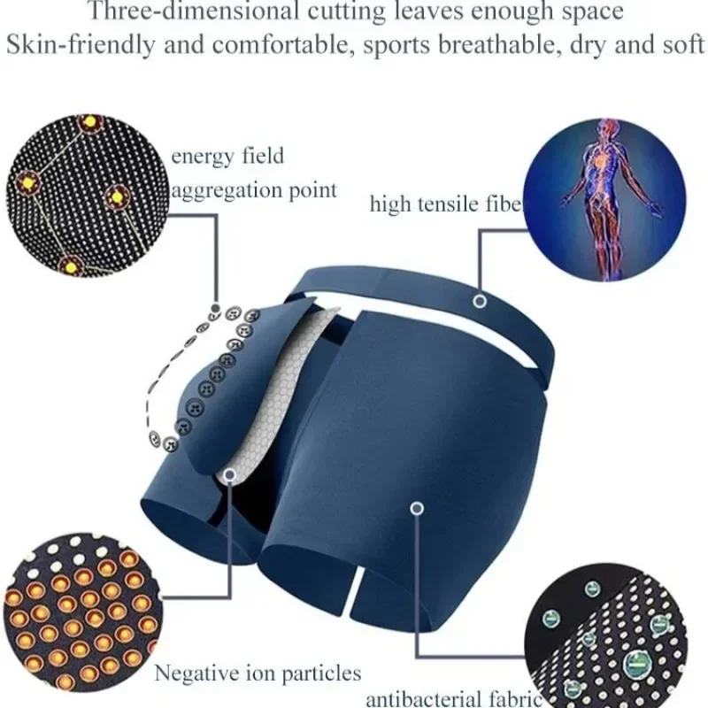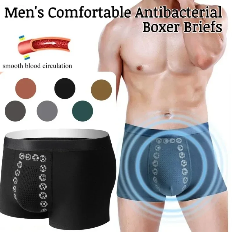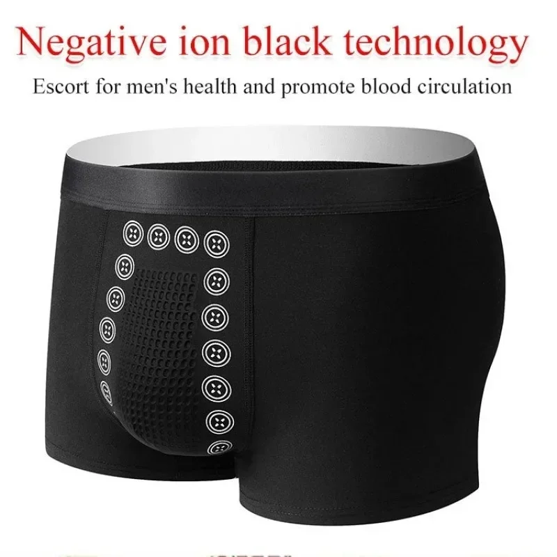 Men’s Boxer Shorts Non-Marking Mid Waist Anion Technology Comfort Underwear Breathable Massage Design Black Men’s Underpants