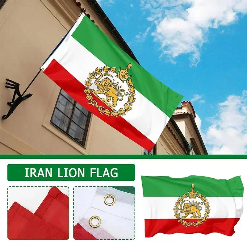 Iran Flag Historic Lion Crown Banner 2x3ft 3x5ft Pahlavi Dynasty Lion and Sun Flag Iran National Flag Polyester Outdoor Decor