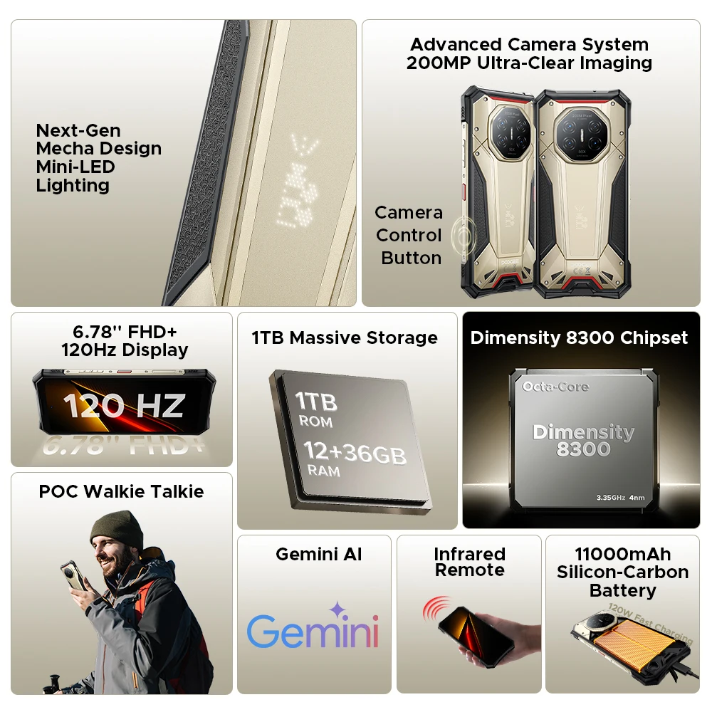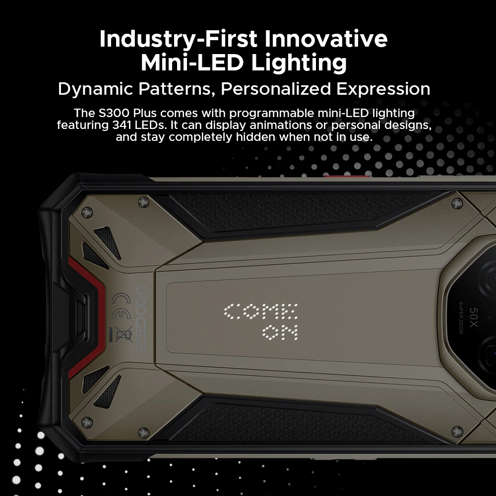 DOOGEE S300 Plus Rugged Phone 5G Android 16 Gemini AI LED Light Display Array 12GB 1TB 11000mAh 120W 6.78'' Screen Smartphone