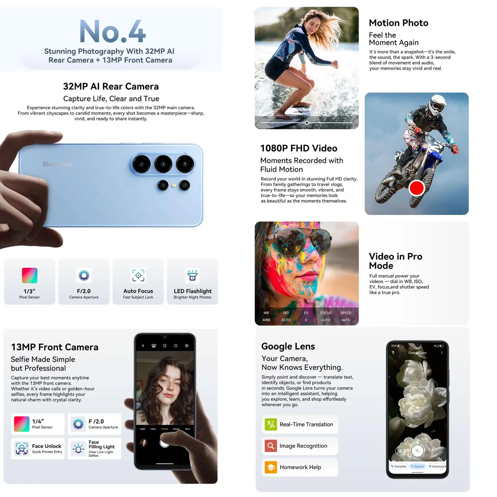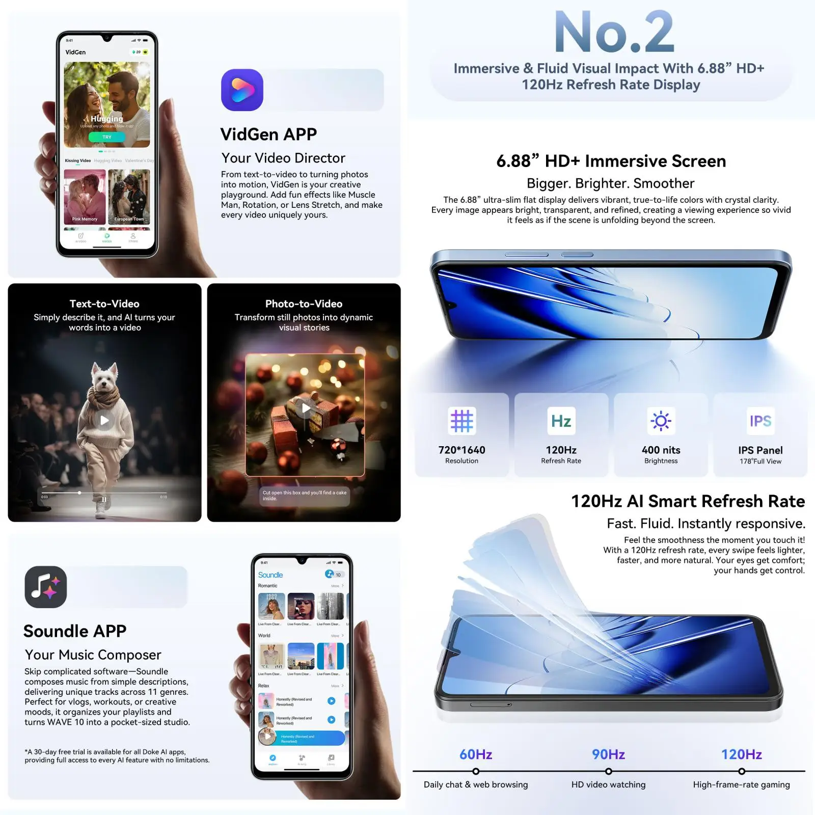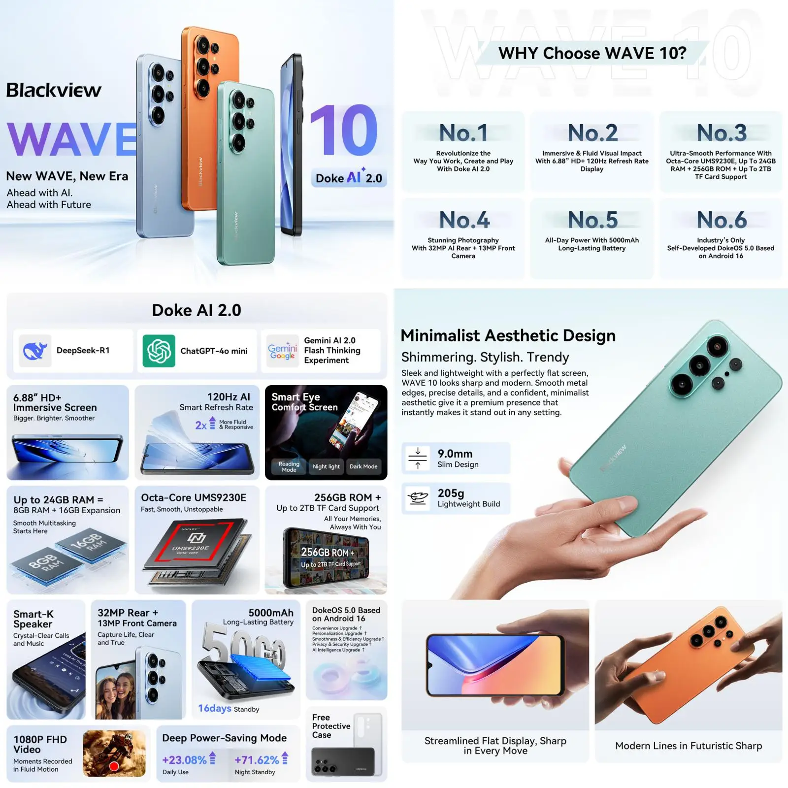 Blackview Wave 10 Smartphone 8GB+128GB 6.88'' HD+IPS 120Hz 5000mAh Battery 32MP Camera Android 16 Unisoc UMS9230E Octa Core 4G