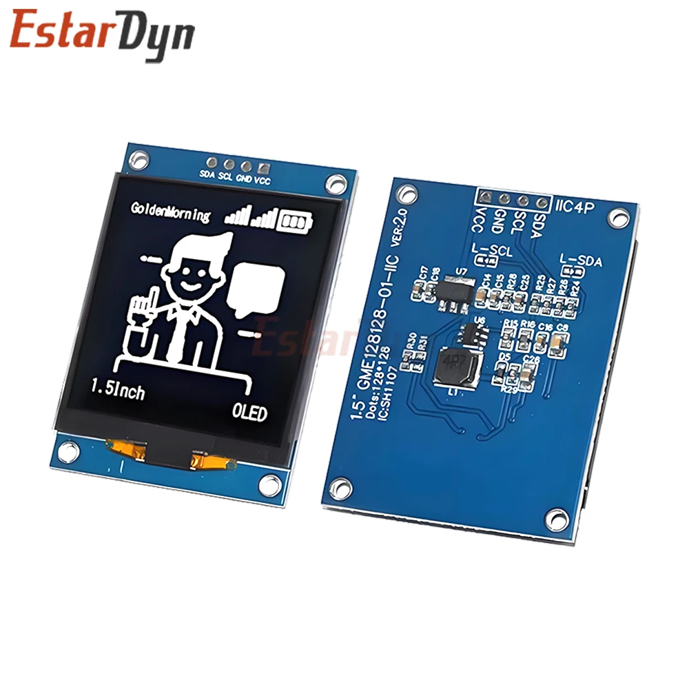 EstarDyn 1.5 Inch SH1107 OLED Display Module, 128x128 I2C 4Pin Screen for Arduino ESP32 Raspberry Pi