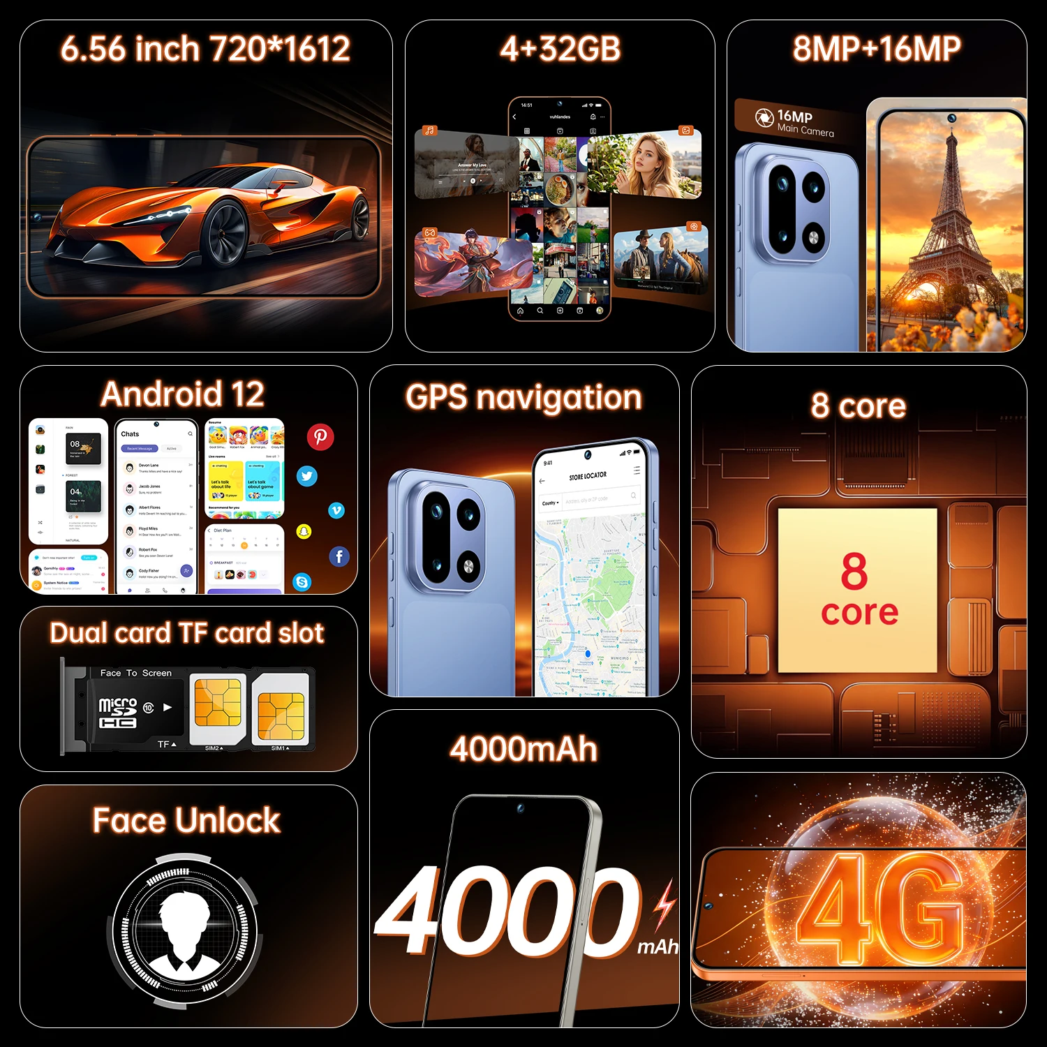 IVMI OP15 Smartphone Android 12 6.56 inch Screen 4+32GB 8+16MP Mobile Phone 4000mAh For Google Play Store Phone