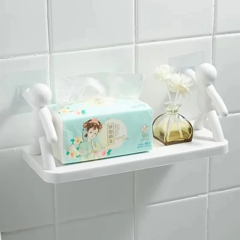 Bathroom Self-adhesive Shampoo Shelves Shower Towel Storage Rack Cosmetic Toilet Organizer Home Decor Kitchen PP Plastic Rack