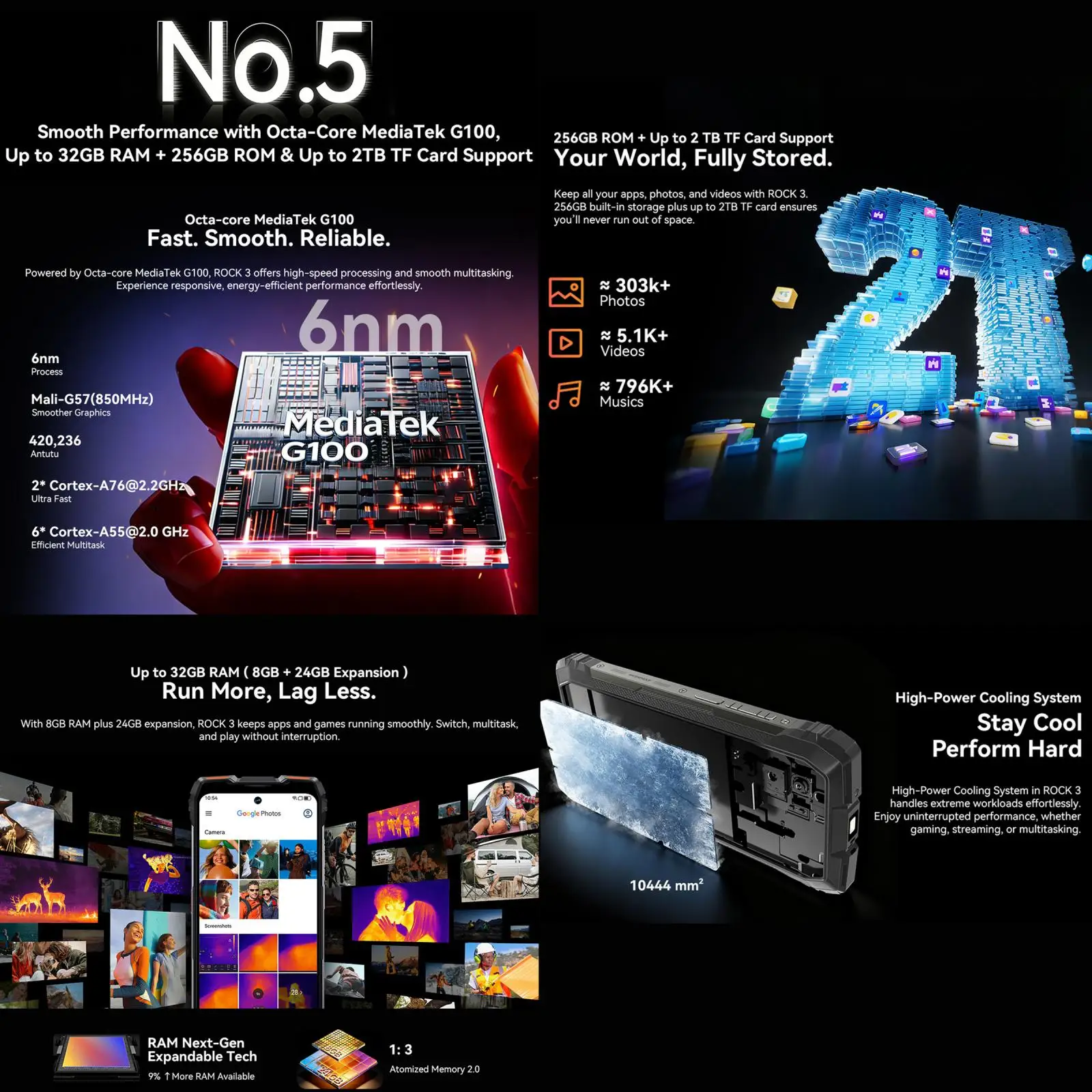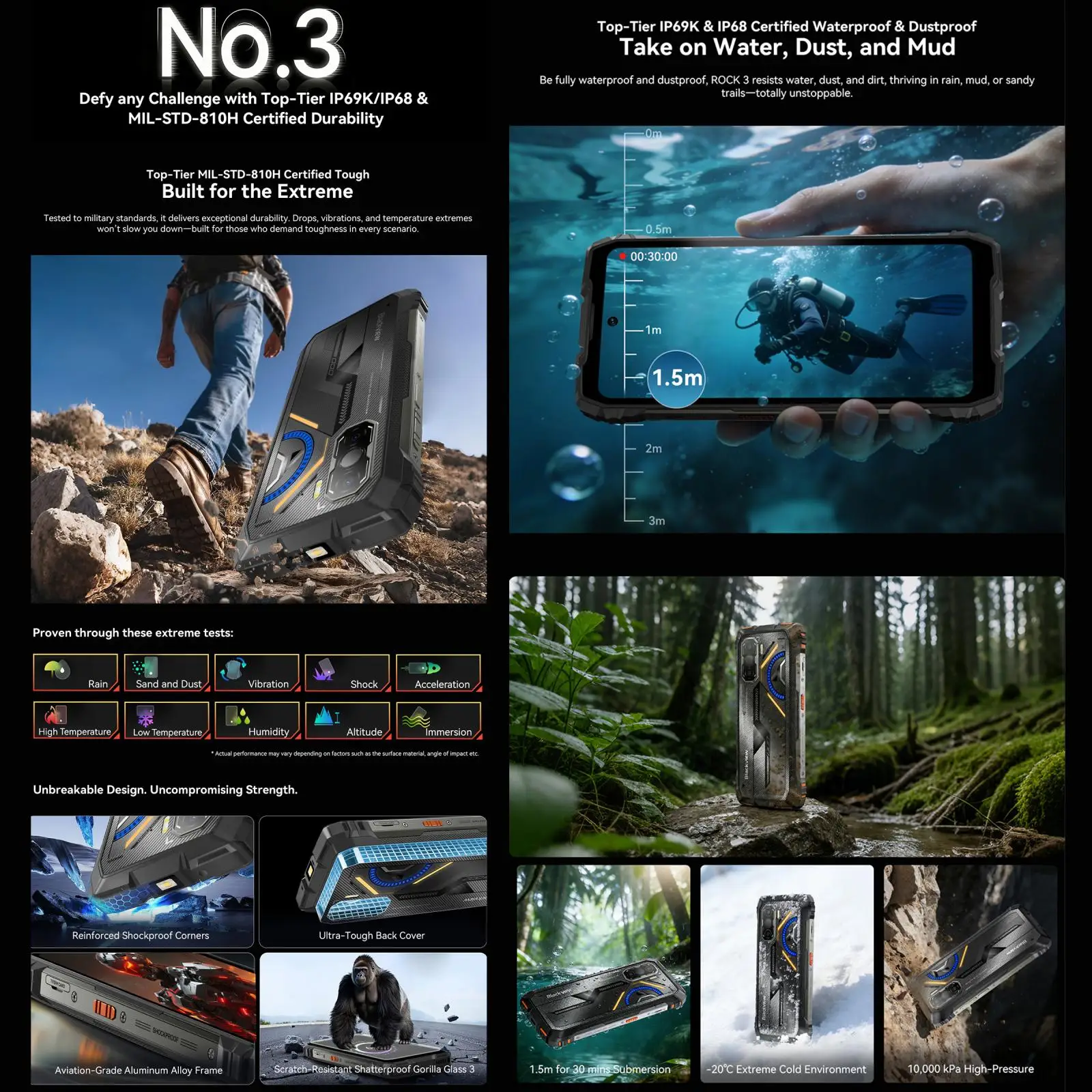 Blackview ROCK 3 Rugged Smartphone Thermal Imaging 6.78'' HD+ IPS 120Hz 108MP Camera 8GB+256GB 10000mAh Battery 4G Android 16 NFC