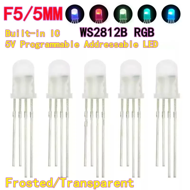50/100PCS F5 WS2812B RGB LED 5mm Through-Hole LED Built-in IC 5V Programmable Addressable LED Frosted/Transparen