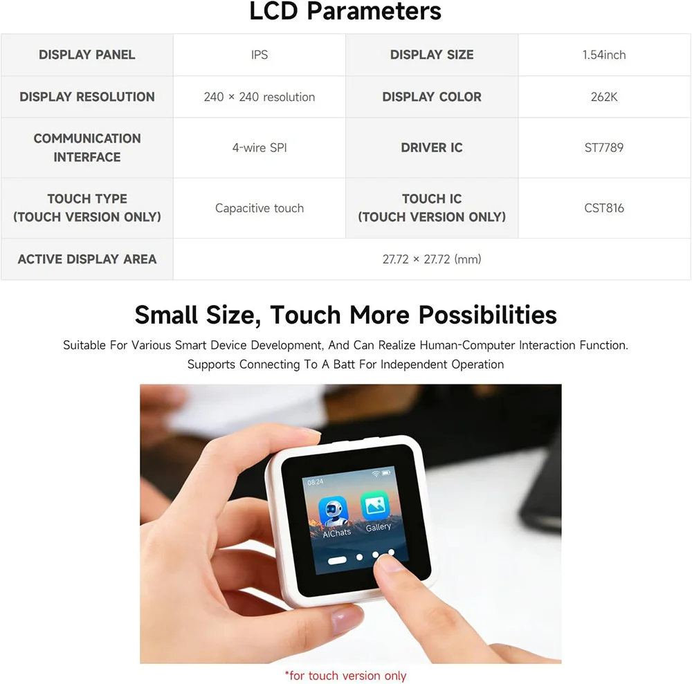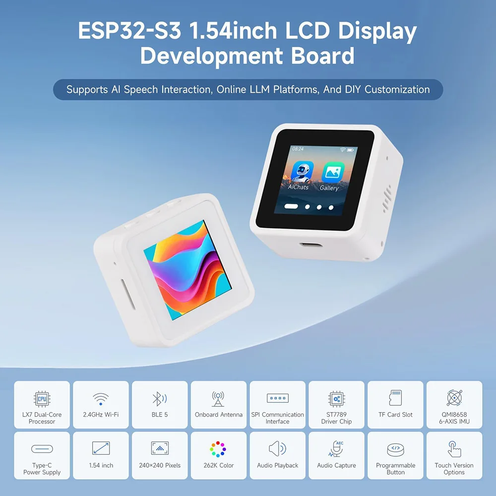 Waveshare ESP32-S3 1.54 inch IPS Touchscreen LCD Display Development Board 240x240 AI Chatbot Support Xiaozhi AI Deepseek Doubao