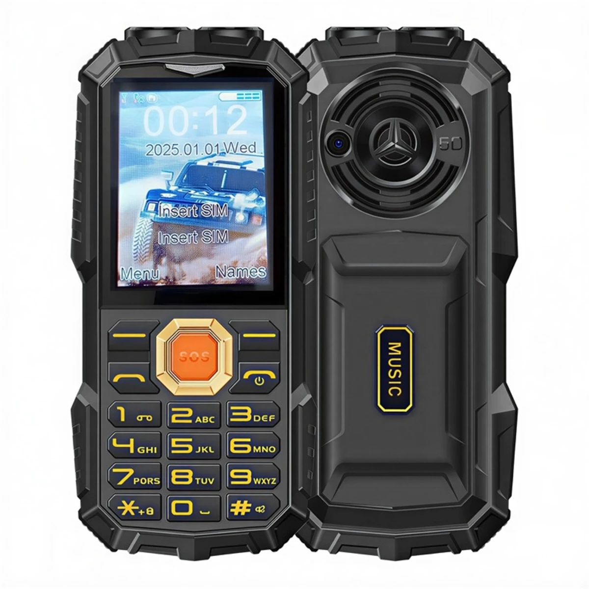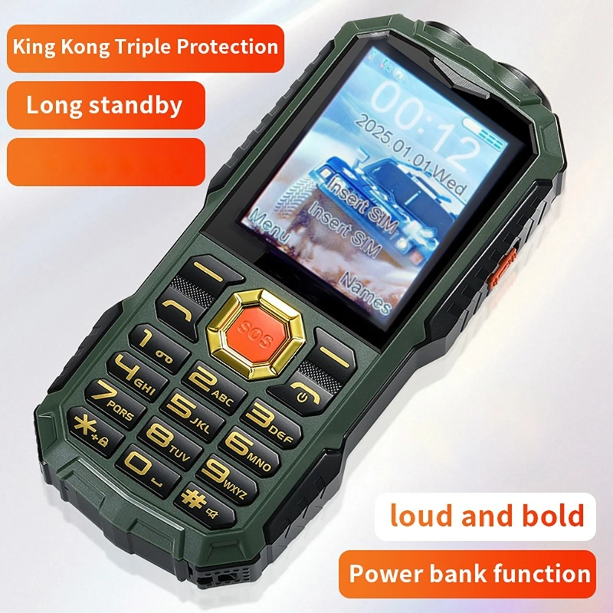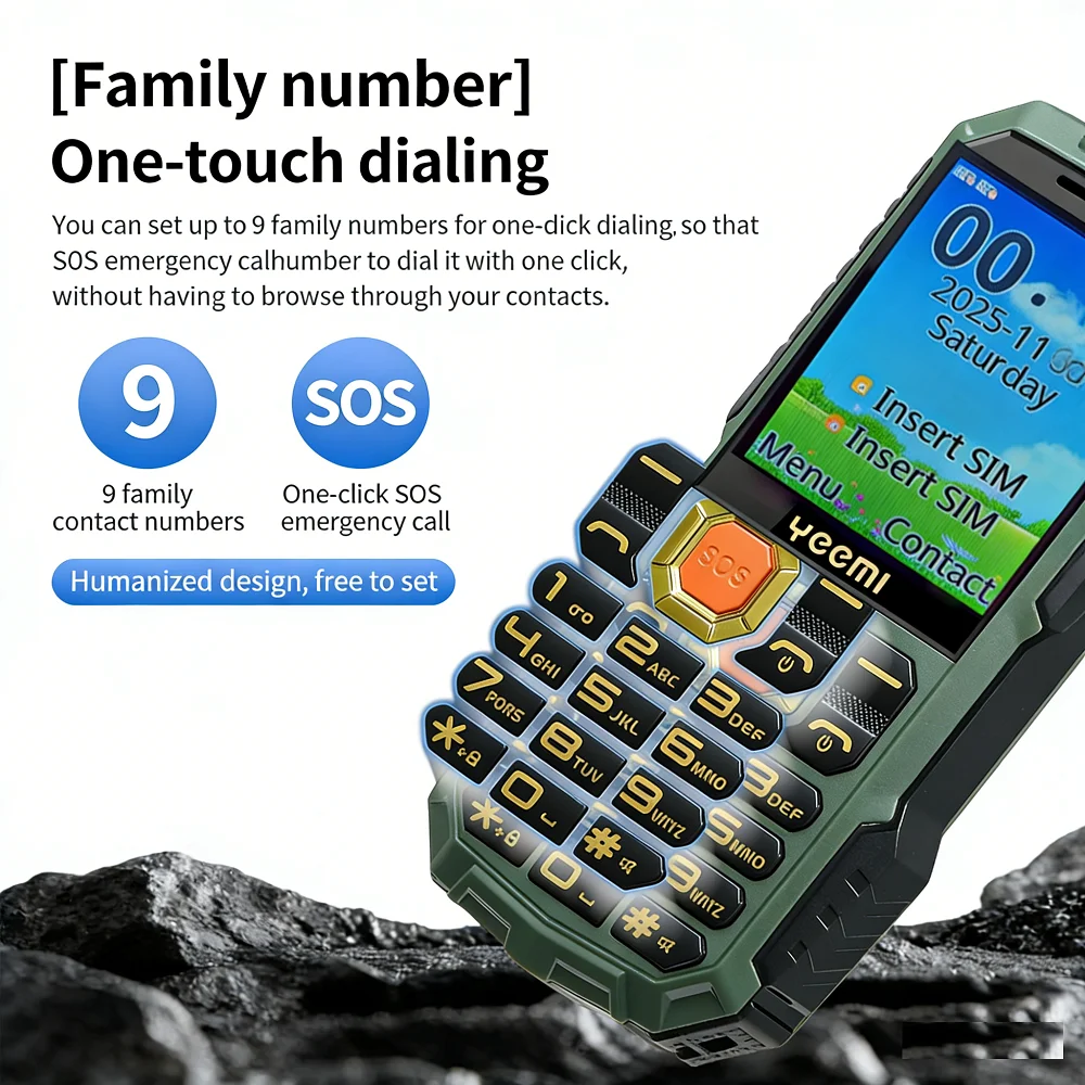 Rugged Feature Cell Phone Retro Button Cell Phone No Apps Big Battery Strong Flashlight Loud Speaker SOS Backup 2G Mobile Phone