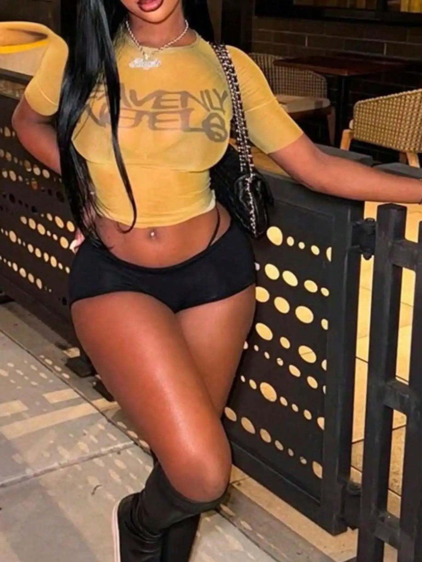 ALI shop - rezultati pretrage ... ... Sexy Mesh Graphic Tee for Women, Short Sleeve Rave Club Top with 'Heavenly Angel' Print, Summer Going Out Outfit ::: 2021 ::: :::