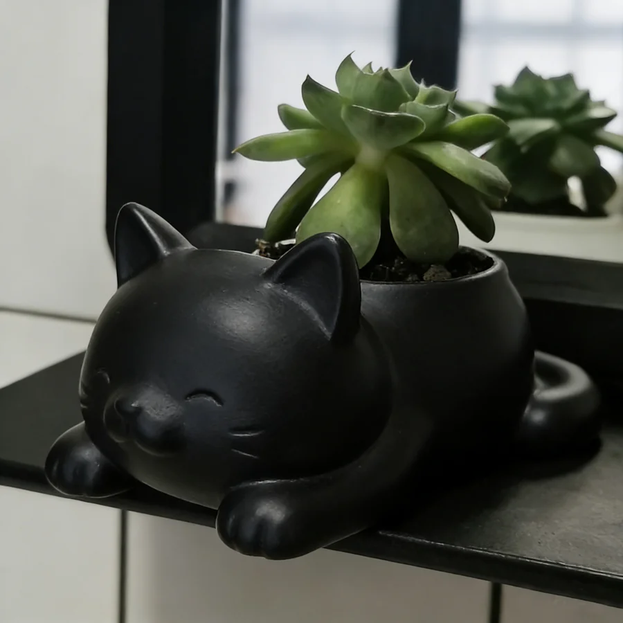 1pc Cartoon Lying Cat Flower Pot, Home Living Room Tabletop Entryway Decoration, Creative Family Garden Planter for Succulents