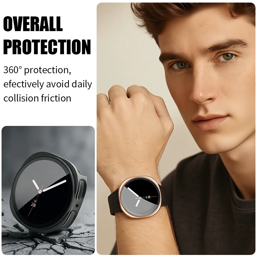 Tempered Glass+Case for Samsung Galaxy Watch 8 44mm40mm Screen Protector Bumper Shell Hard Matte All Around Protective Cover