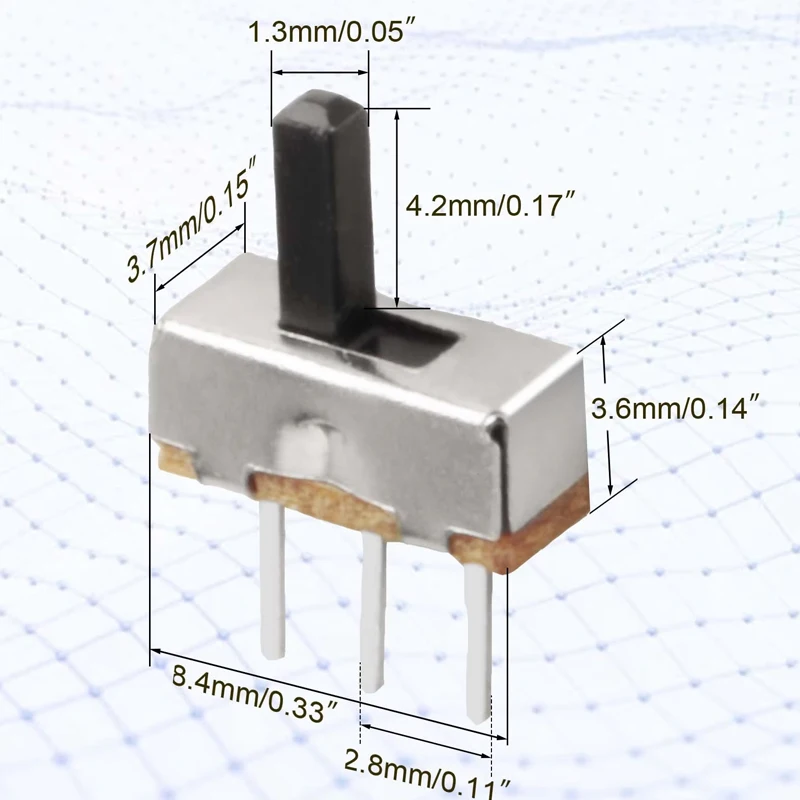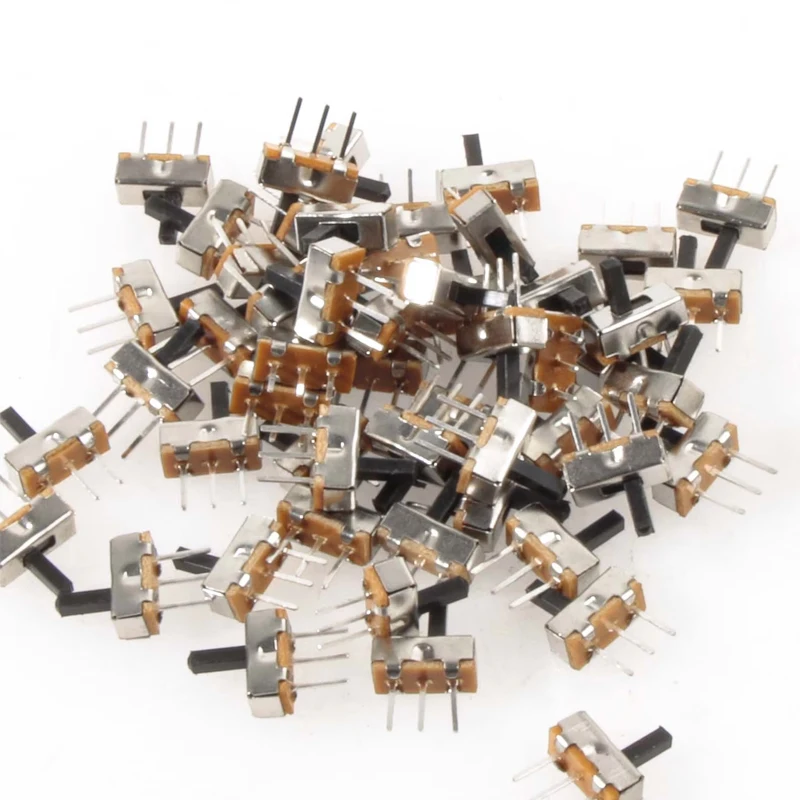 100pcs Mini Vertical Micro Slide Switch 2 Position 3 Pin Terminal 1p2t SPDT On/Off Switches SS-12D00 For PCB Breadboard Electron