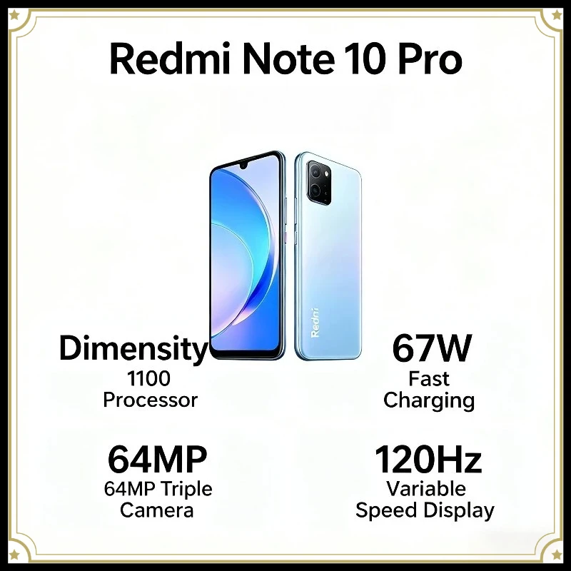 Xiaomi Redmi Note 10 Pro Smartphone 6.6'' FHD+ 120Hz Display 64MP Triple Camera 67W Fast Charge 5000mAh Battery Global Version