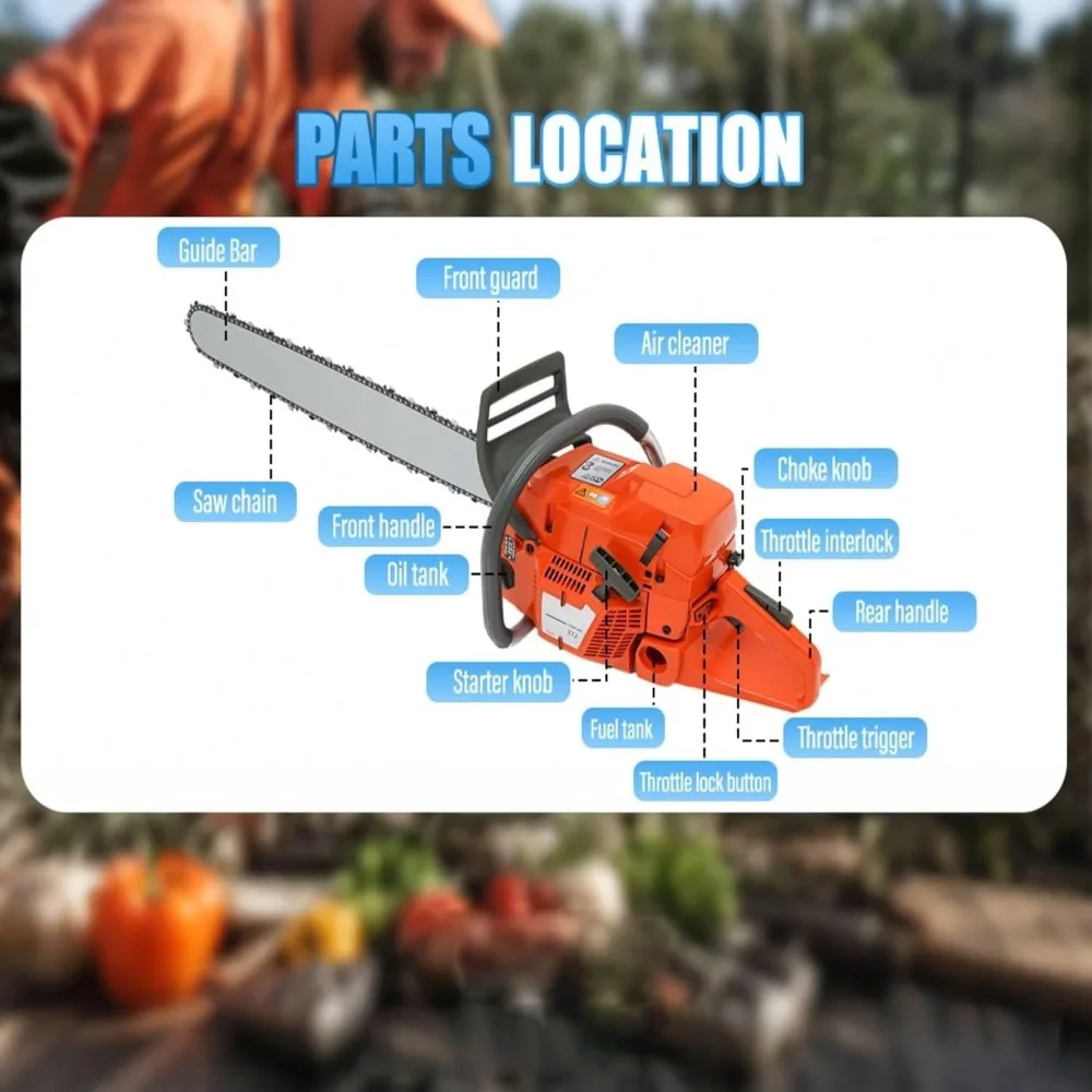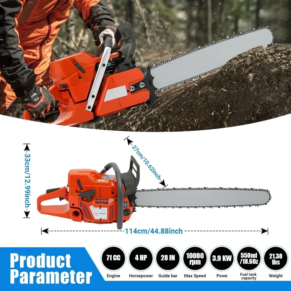 28 Inch 71CC 2-Cycle Gas Chainsaw 4HP Handheld Petrol Chainsaw for Wood Cutting