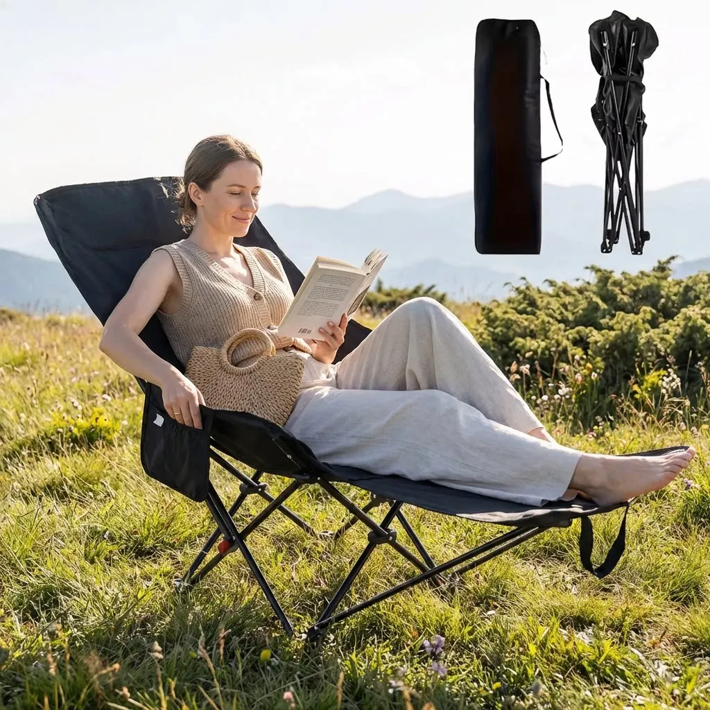 300-Pound Heavy-Duty Foldable Beach Chair with Adjustable Height and Crossed Backrest - Portable Outdoor Chair for Camping, Fish