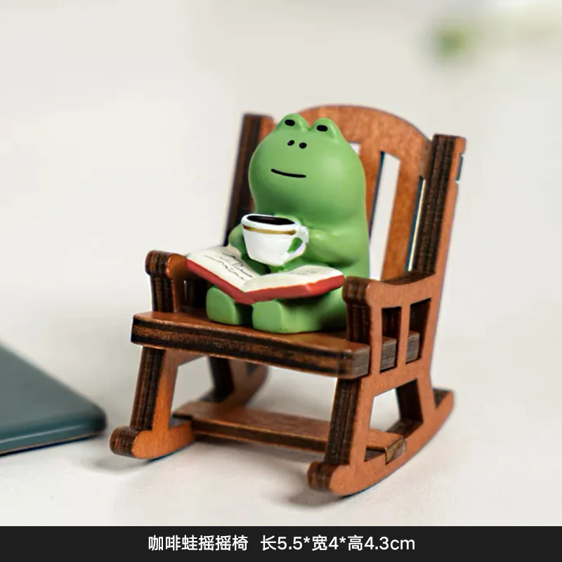 Cute Healing Small Decoration Cute Mini Frog Resin Figurine Rocking Chair Design with Book Coffee Home Bedroom Office Decoration