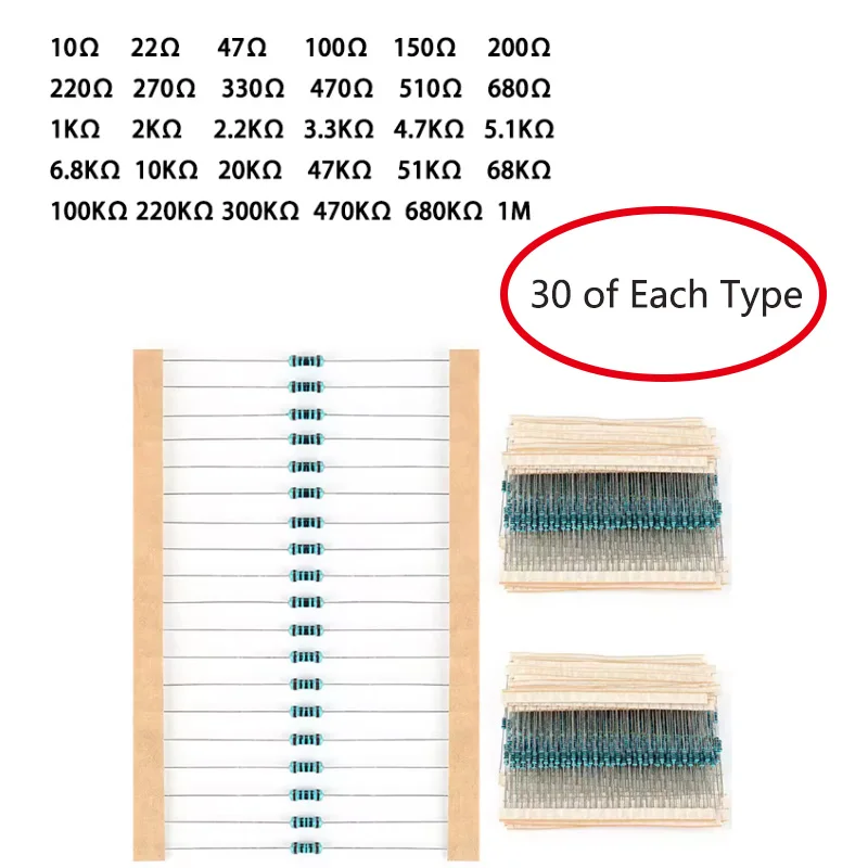 ALI shop - rezultati pretrage ... ... 300/600pcs 1/4W Metal Film Resistor Kit - 30 Values 10R-1M 0.25W 1% Tolerance, Electronic Components DIY Resistencia Set ::: 2021 ::: :::