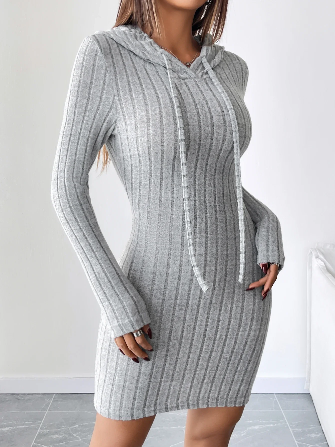 ALI shop - rezultati pretrage ... ... Trendy Ribbed Knitted Hooded Slim Fit Dress with Drawstring - Comfortable Casual Style for Women ::: 2021 ::: :::