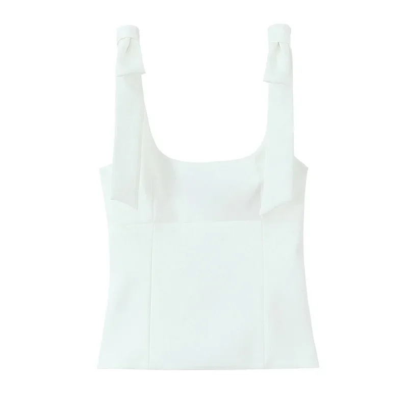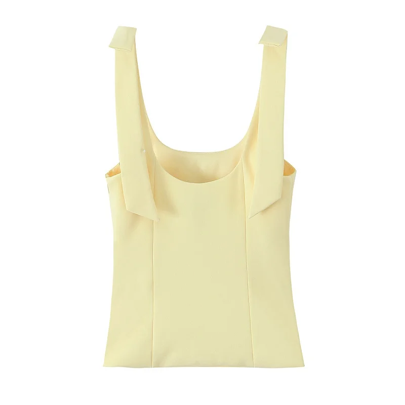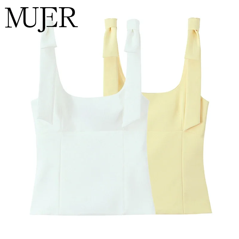 MUJER 2025 Bow Crop Top Woman Yellow Backless Top Women White Sleeveless Tops for Women Summer Camisole Bustier Top Female
