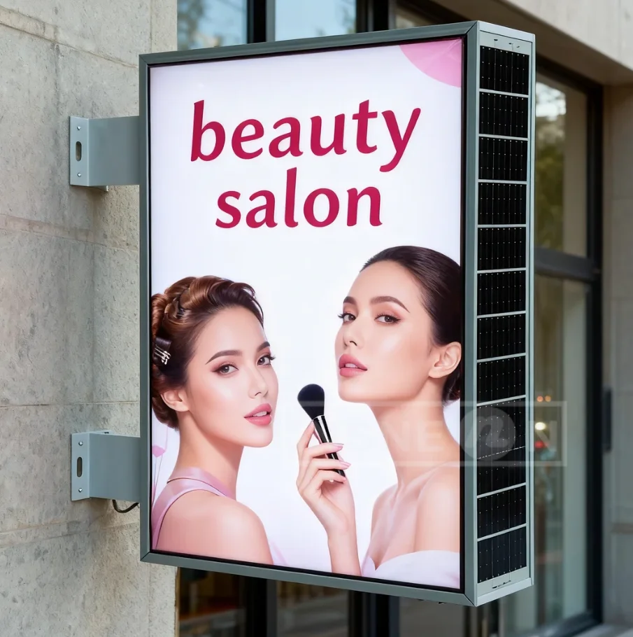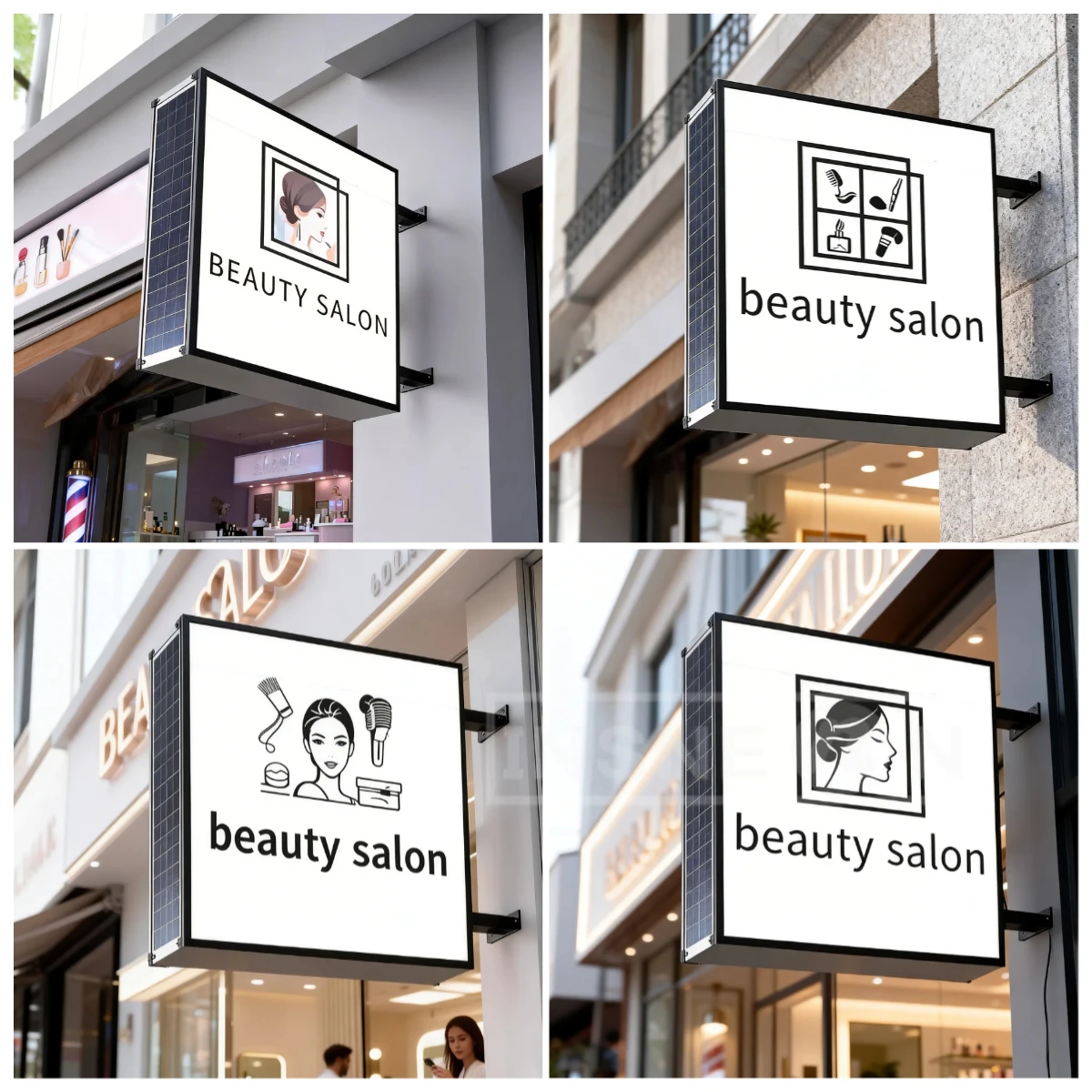 Beauty Salon Custom Illuminated Storefront Sign UV-Printed Film Fireproof Waterproof Side-Hung Solar Light Box Billboard Outdoor
