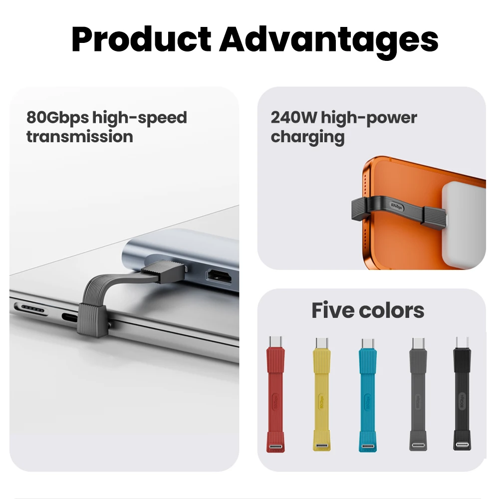 USB4.0 PD 240W Type-c to Type-c Portable Fast Charging Short Cable 80Gbps 8K@60Hz Video For iPhone15/16/17 Samsung 51MM/67MM