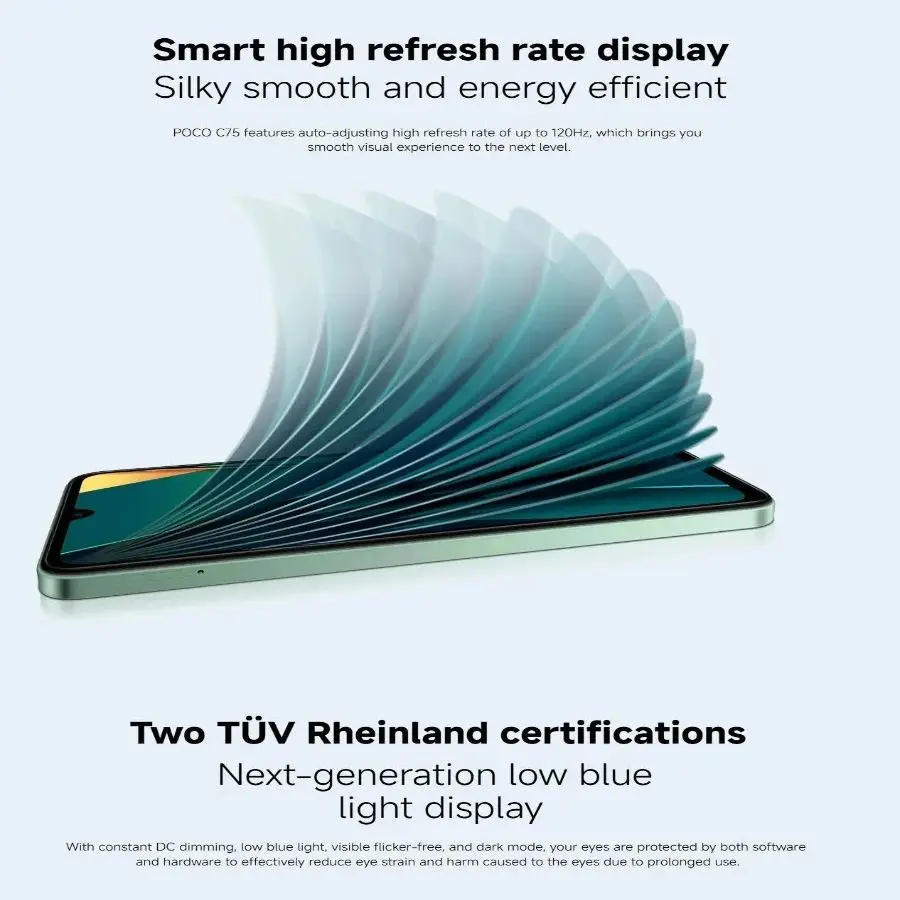 POCO C75: 6.88-inch display with a 120Hz refresh rate, 50MP AI dual camera, 5160mAh battery, 18W fast charging, 8GB RAM + 256GB