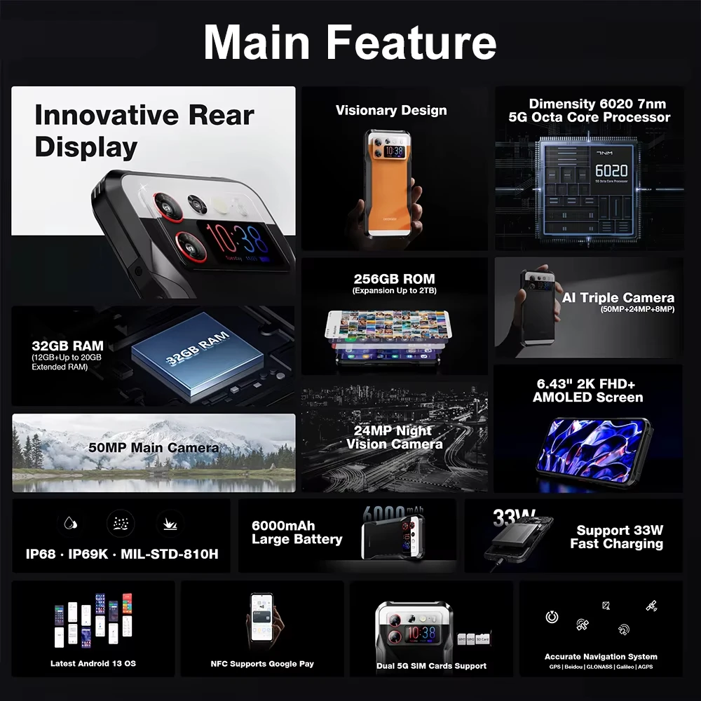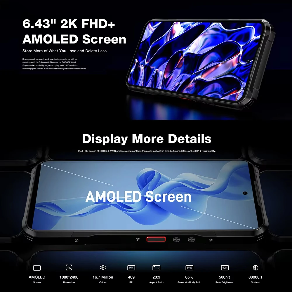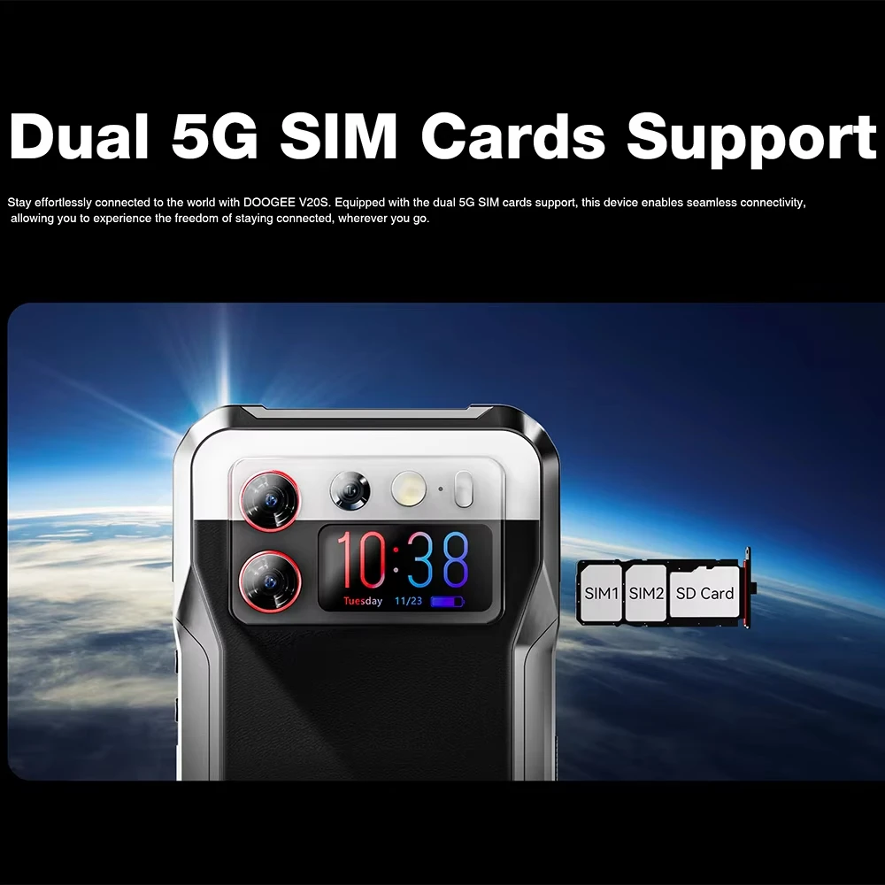 DOOGEE V20S Rugged Smartphone 5G 12GB 256GB Dimensity 6020 Octa Core Mobile Phone 1.58'' AMOLED Rear Display With Kickstand Phone