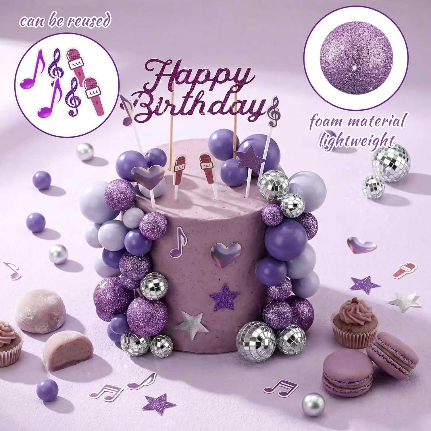ALI shop - rezultati pretrage ... ... Complete K-Pop Party Cake Topper: Purple Disco Balls, Mic, Hearts & “Happy Birthday” – Music Theme Decor ::: 2021 ::: :::