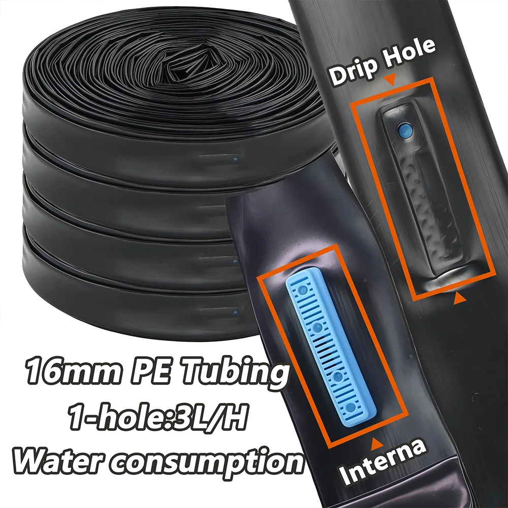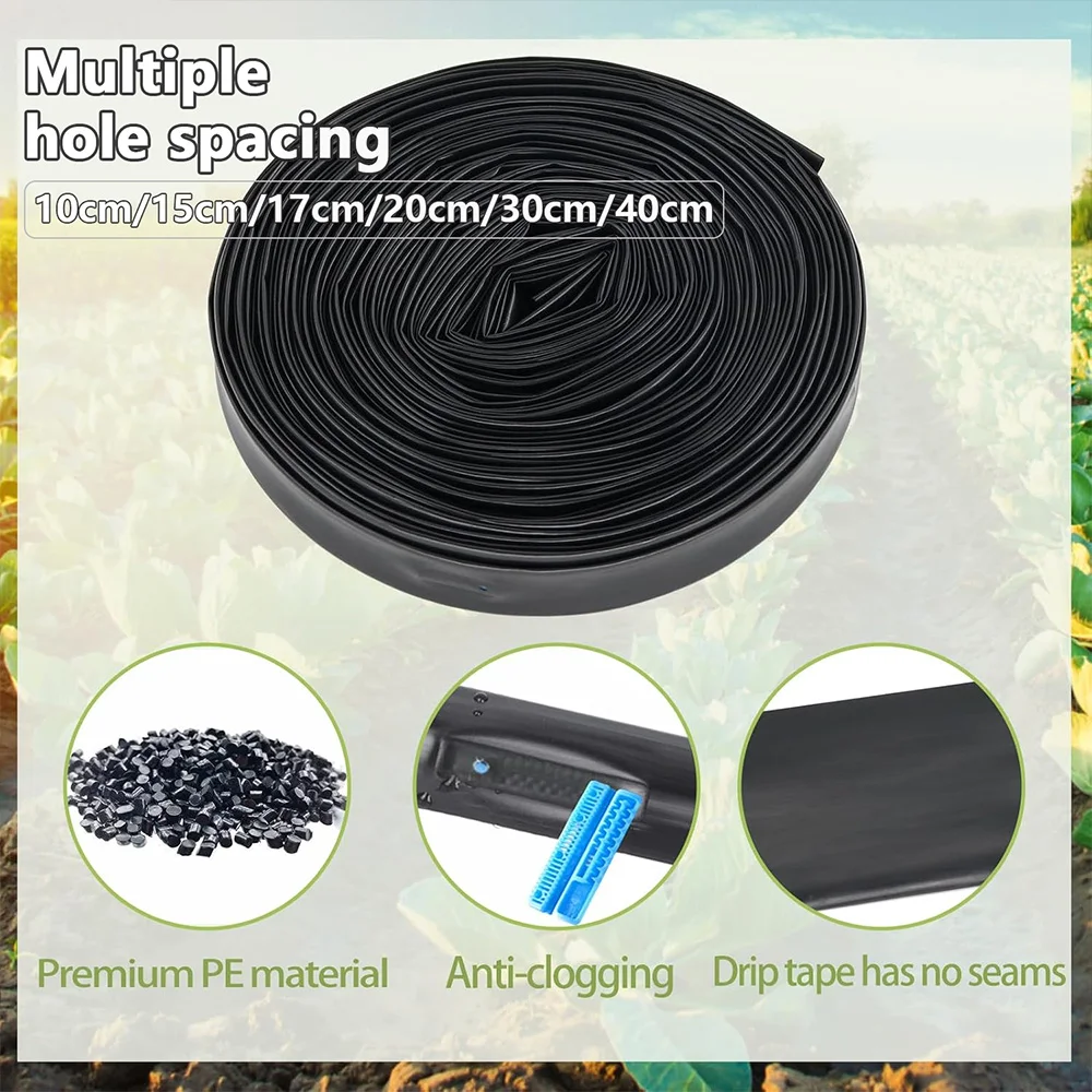 50/100m Drip Tape 16mm PE Tubing Spacing 10-40cm for Garden Greenhouse Watering Farm Agricultural Irrigation Soaker Hose Dripper