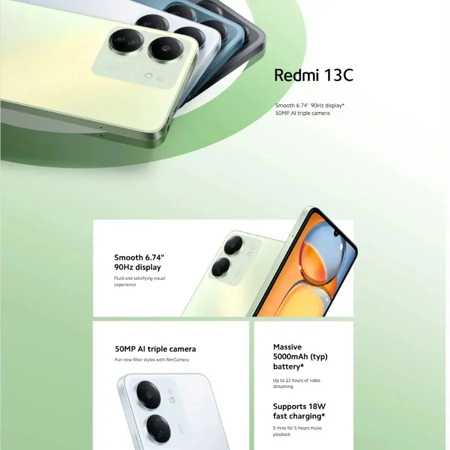 Redmi 13C 8+256GB Smartphone, 6.74-inch Full HD+ 90Hz LCD Display, 5000mAh Battery 2026 New Model