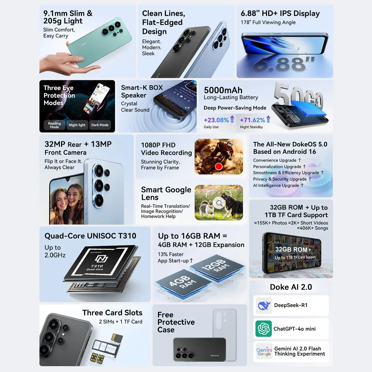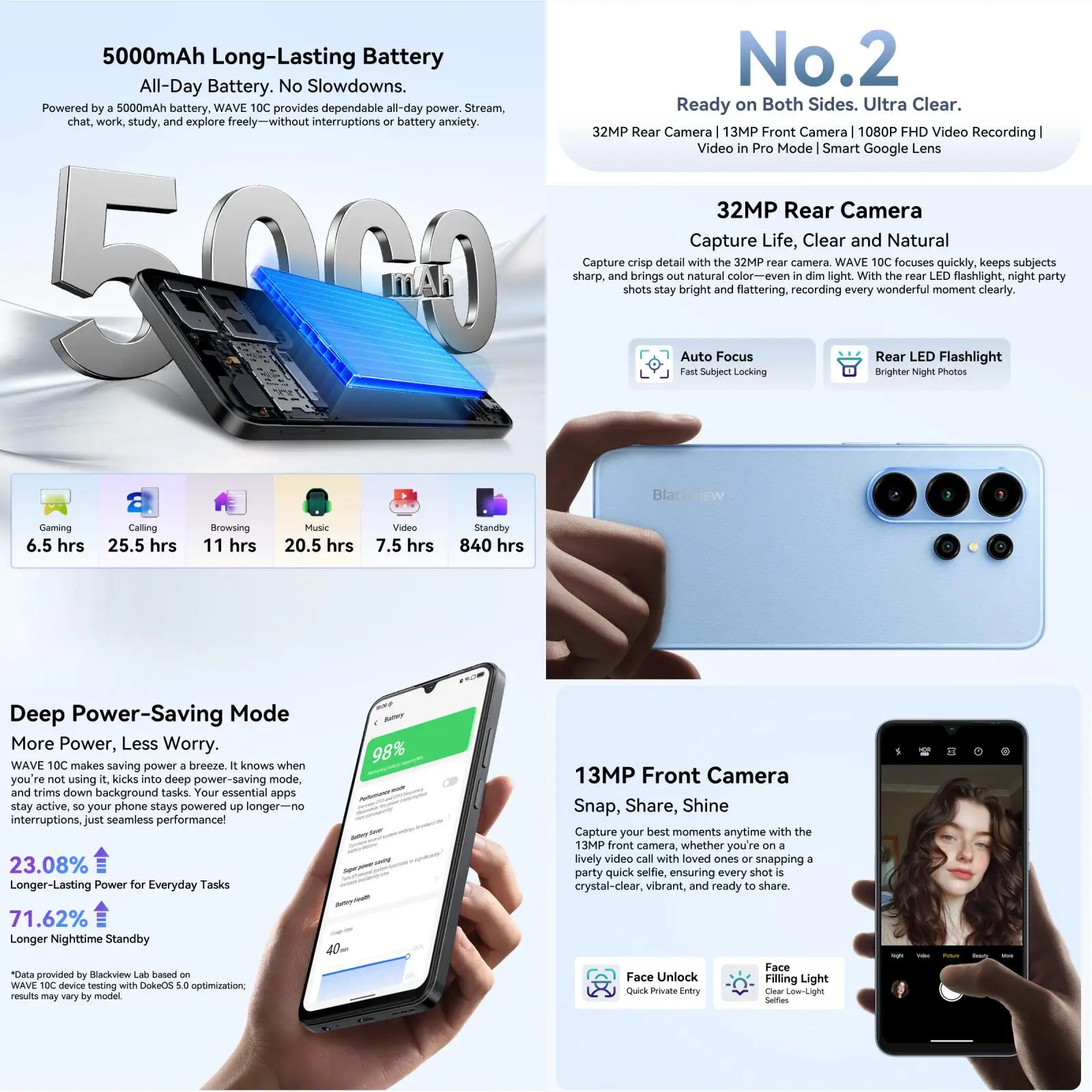 Blackview WAVE 10C Smartphone 6.88'' HD+IPS Display 5000mAh Battery 4GB+32GB / 128GB Unisoc Cell Phone 32MP Camera 4G Android 16