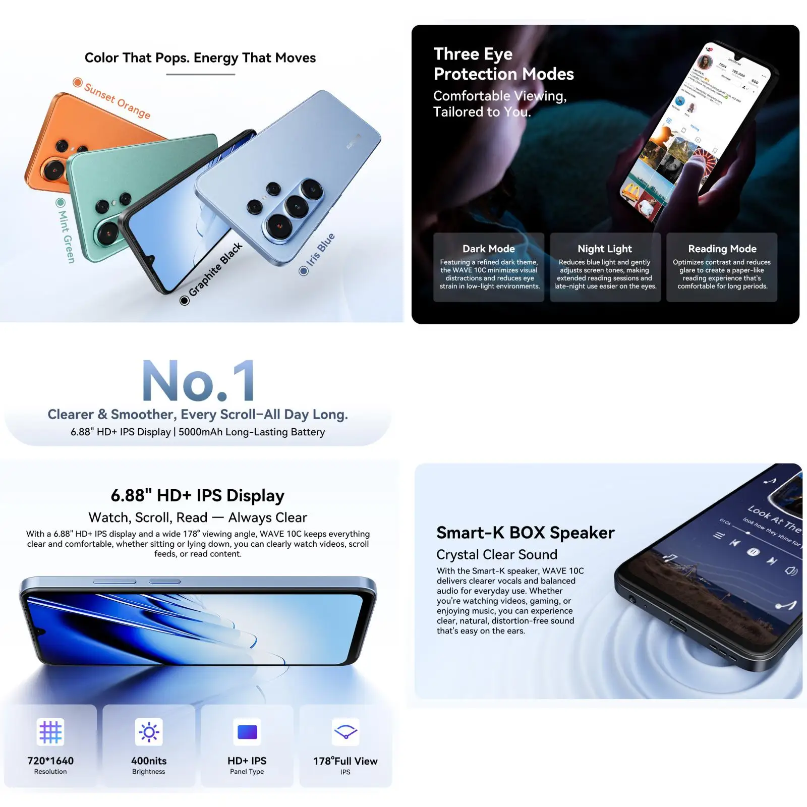 Blackview Wave 10C Smartphone 4GB+32GB/ 128GB 6.88'' 60Hz HD+IPS 5000mAh Battery 32MP Camera Android 16 Cell Phone 4G OTG