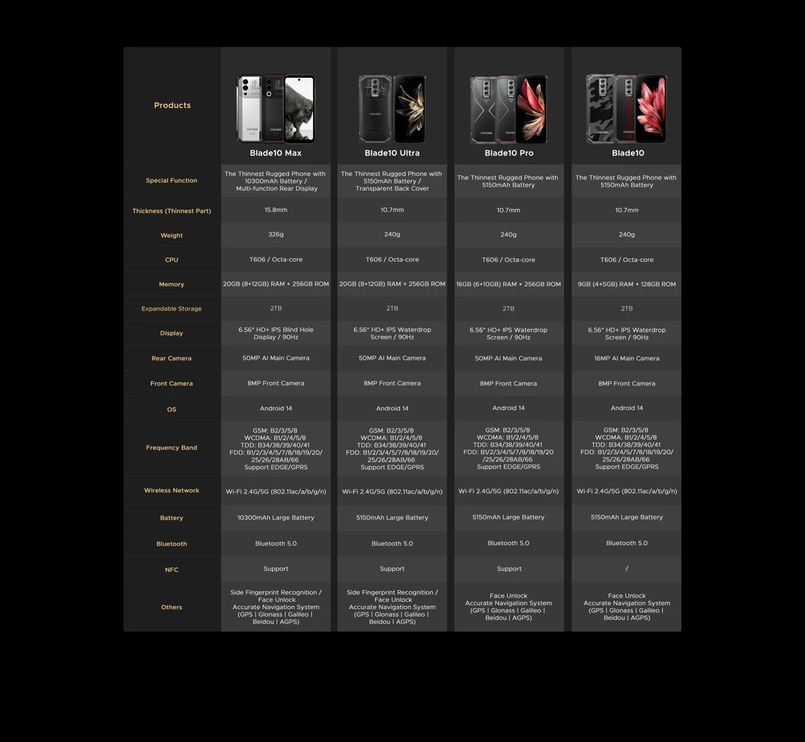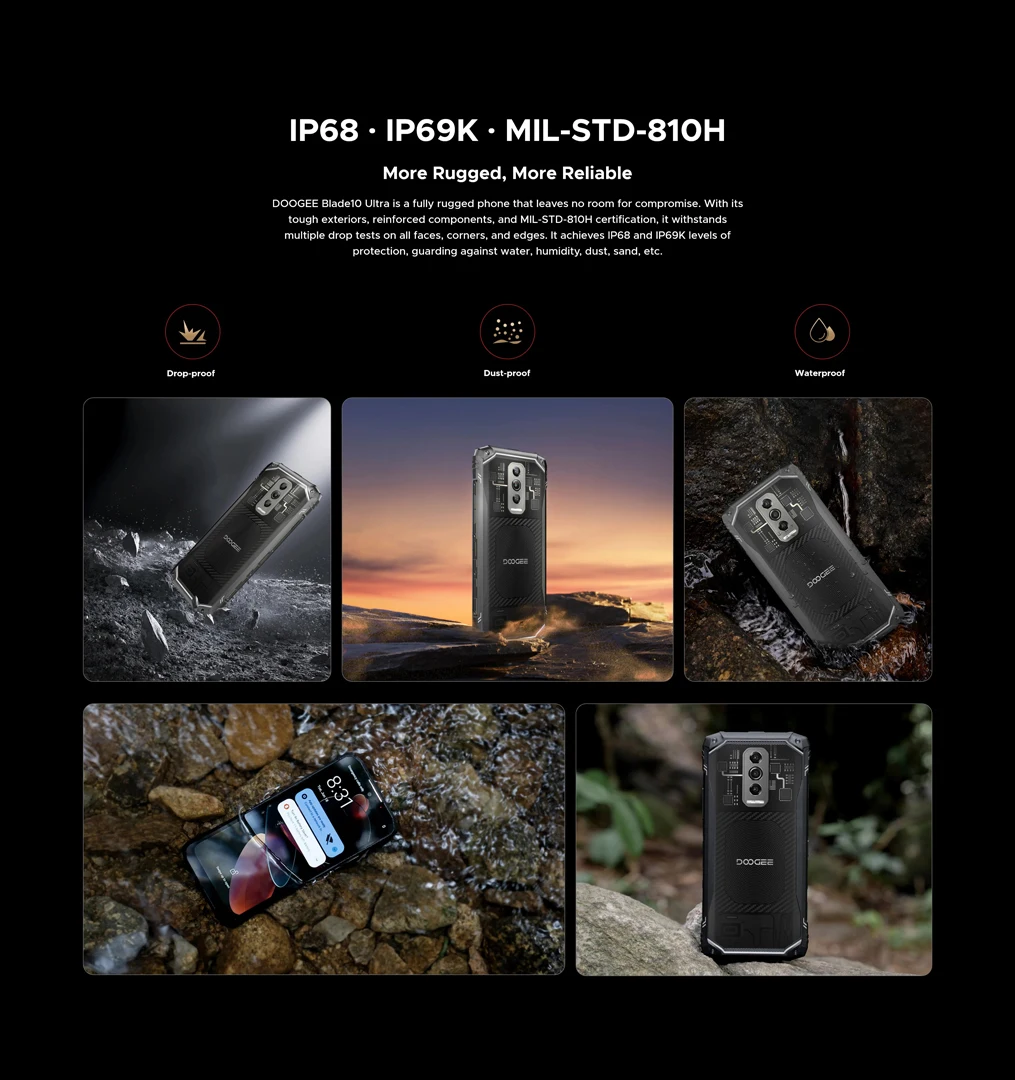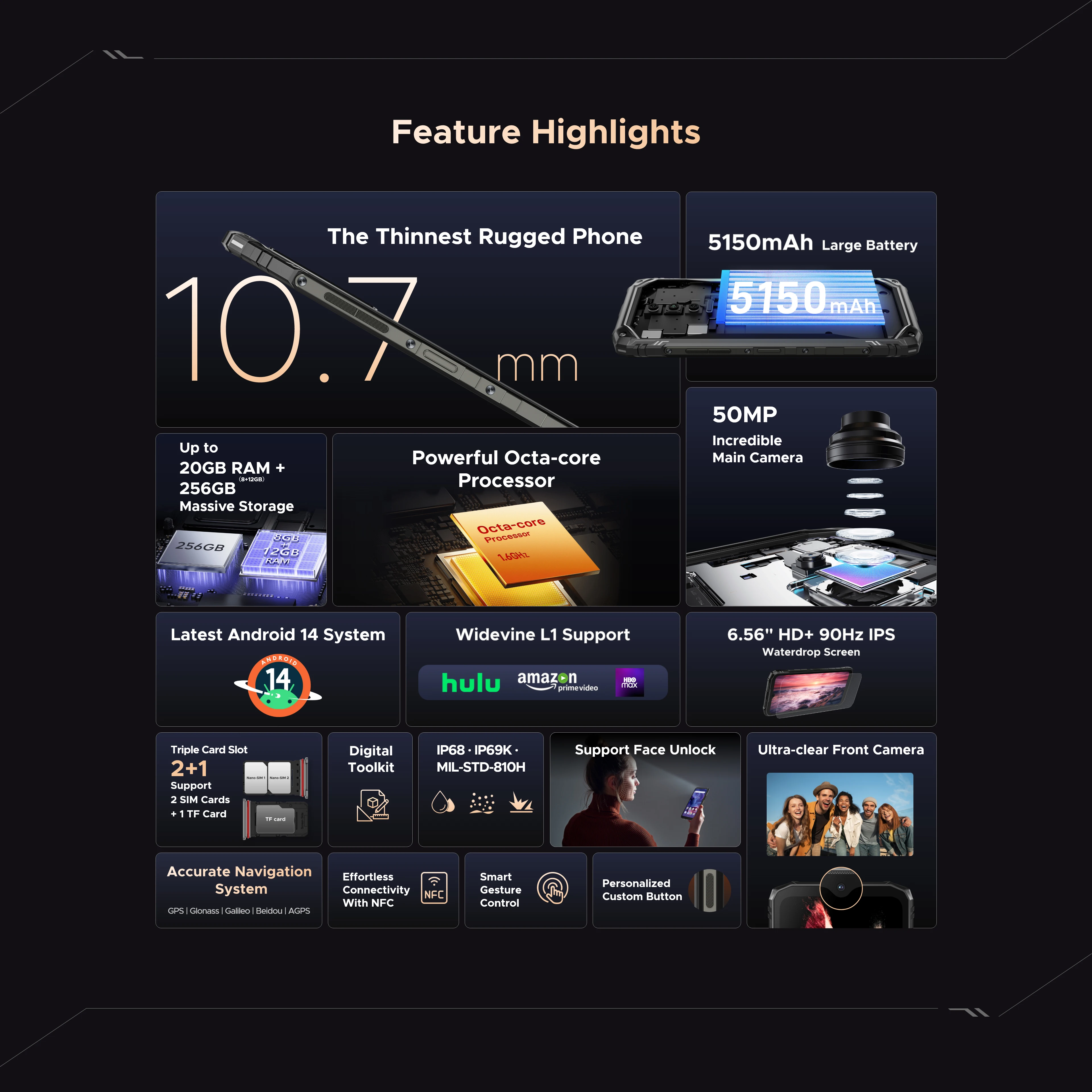 DOOGEE Blade10 Ultra Rugged Phone 6.56'' HD+ Display 10.7mm Ultra-thin 32GB(8+24)+256GB 50MP+8MP 5150mAh Battery NFC Smartphone