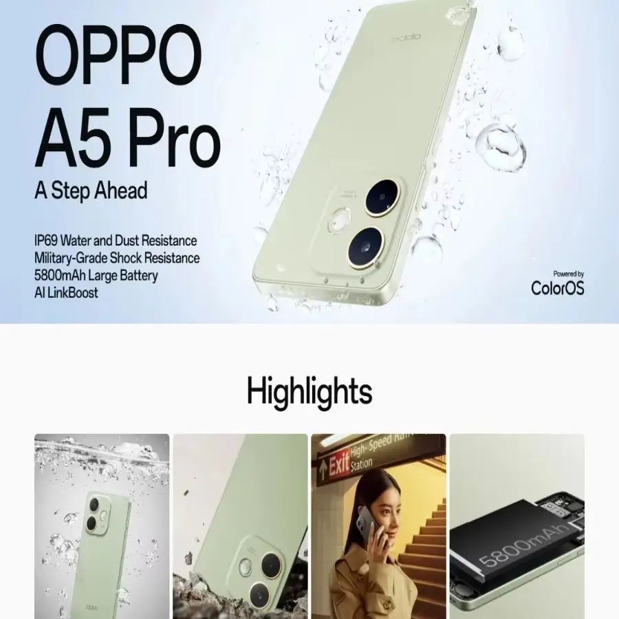 2026 (Latest Model) OPPO A5 Pro Global Edition Smartphone: 8+256GB, 6.67-inch display, 5800mAh battery, 50-megapixel camera,