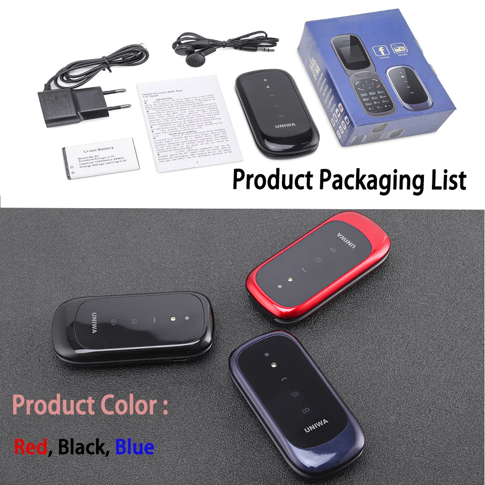 UNIWA F9E NEW 1.77” Classic Keypad 2G Flip Phone High Volume Feature Phone MP3/MP4 BT V2.0 Dual SIM Dual Standby 800mAh Battery