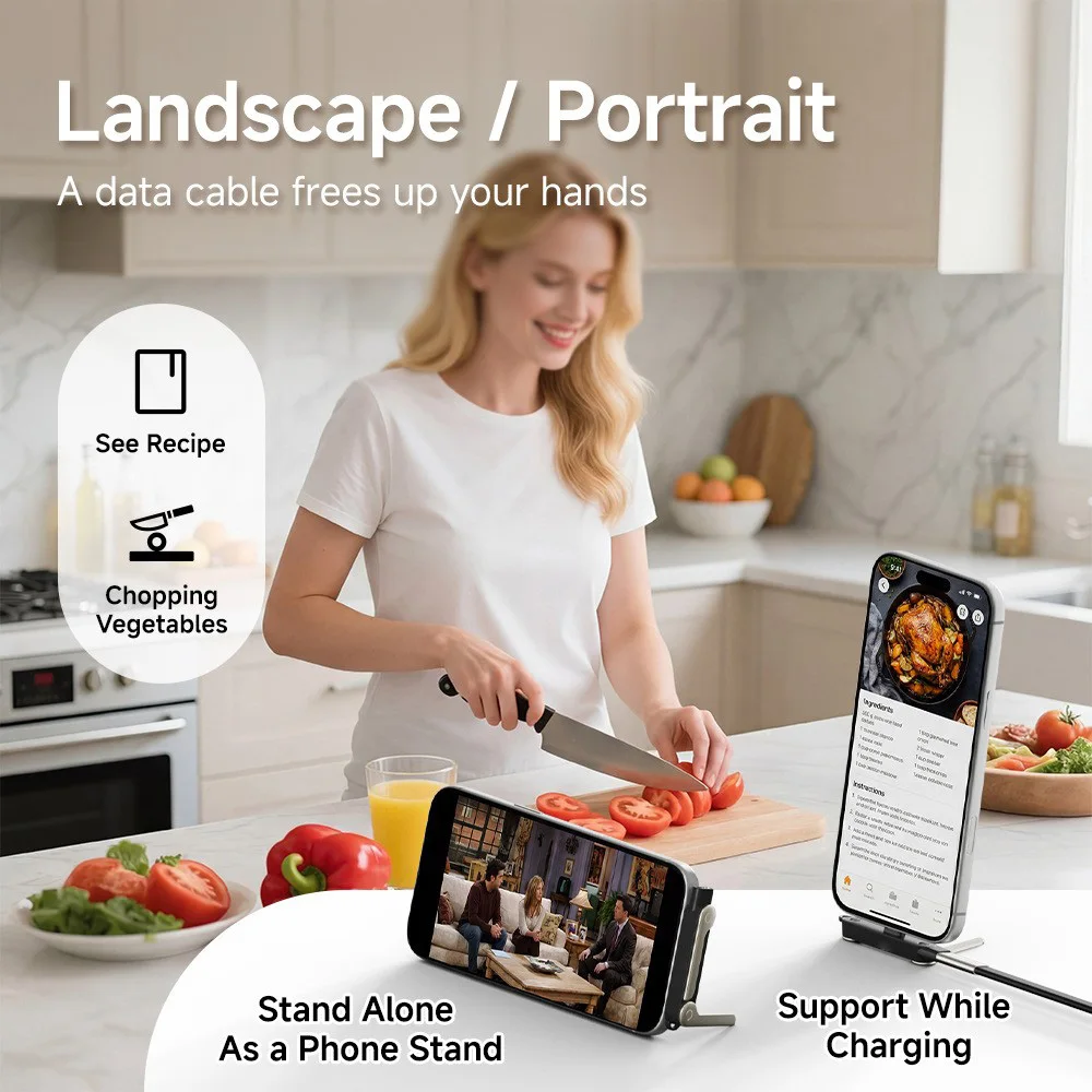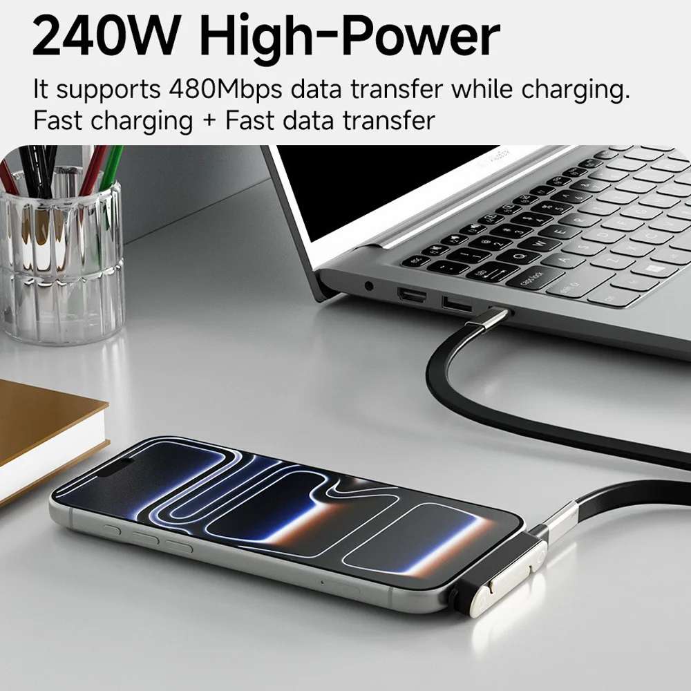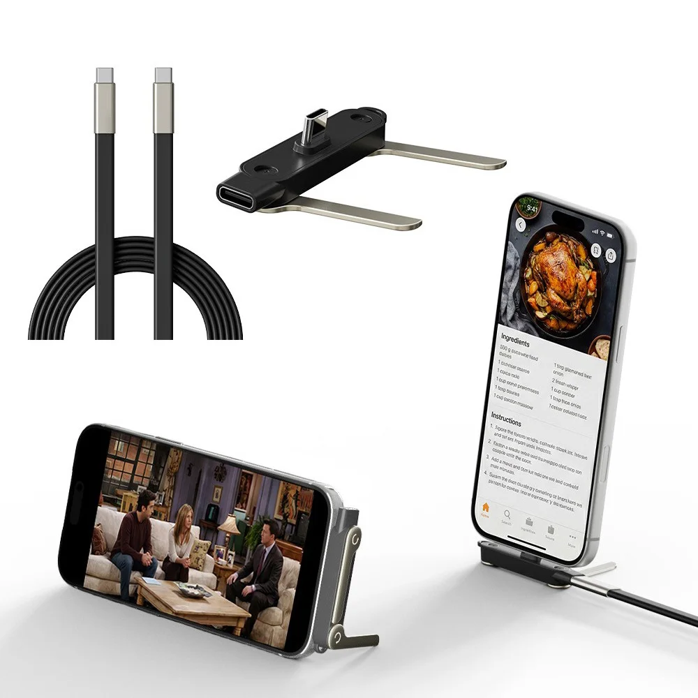 240W 2-in-1 USB C To Type C Fast Charging Foldable Bracket Data Cable For iPhone 17 Oneplus Detachable Cables tipo c Adapter