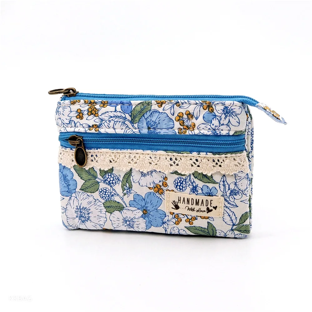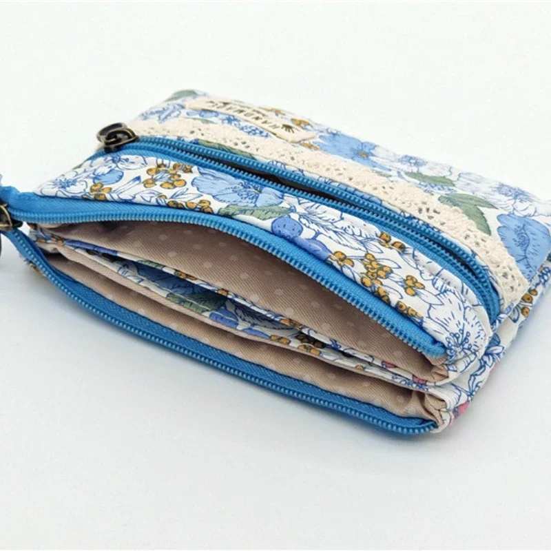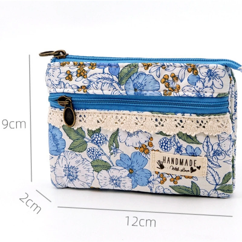 New Fashion Flower Multi-layer Cotton Fabric Coin Purse Women Card Wallet Small Change Bag Retro Canvas Female Hand Purses Pouch