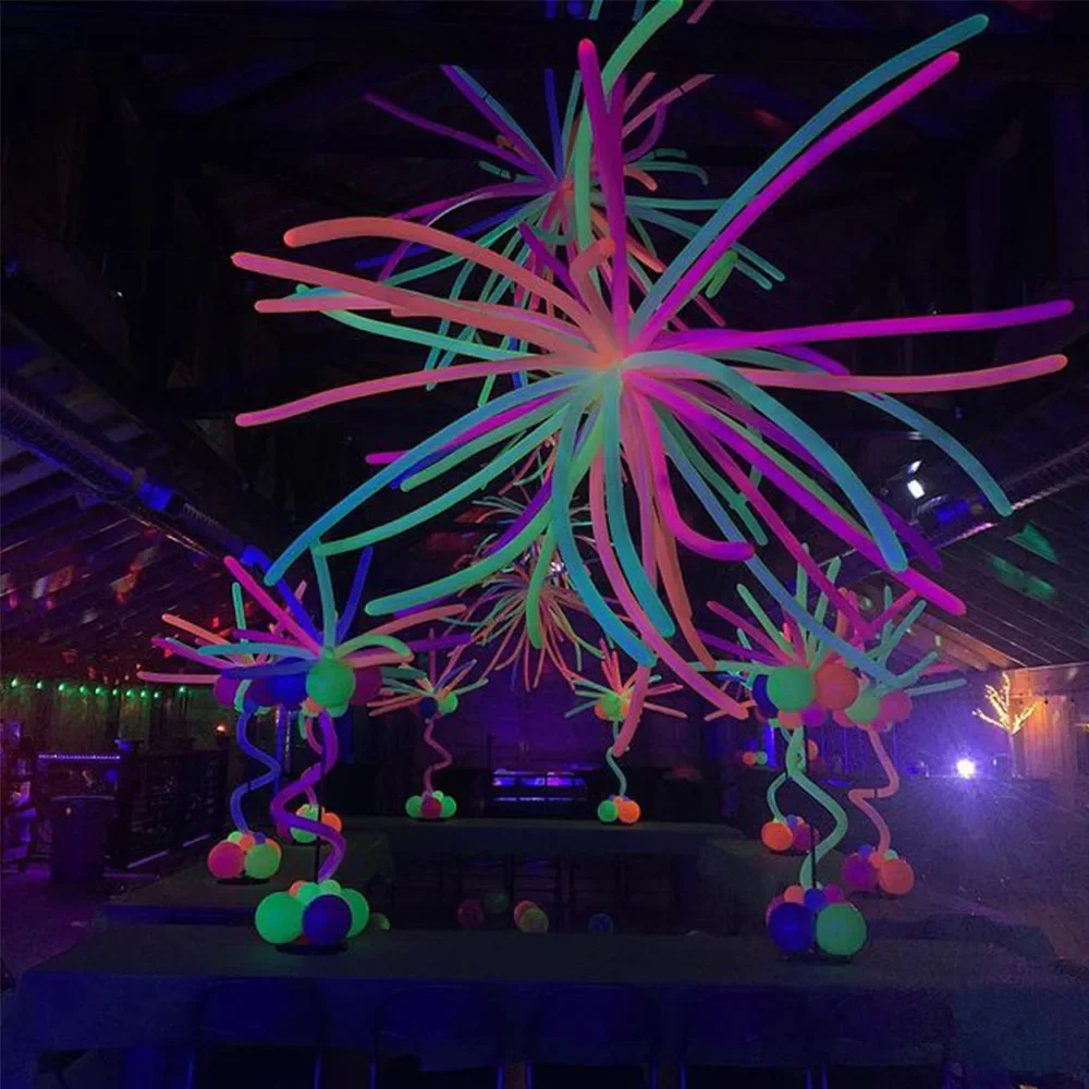 50pcs Neon Long Twisting Fluorescent Balloons Long Latex Balloon DIY Balloon Neon Birthday 80s 90s Party Decors Glow in The UV