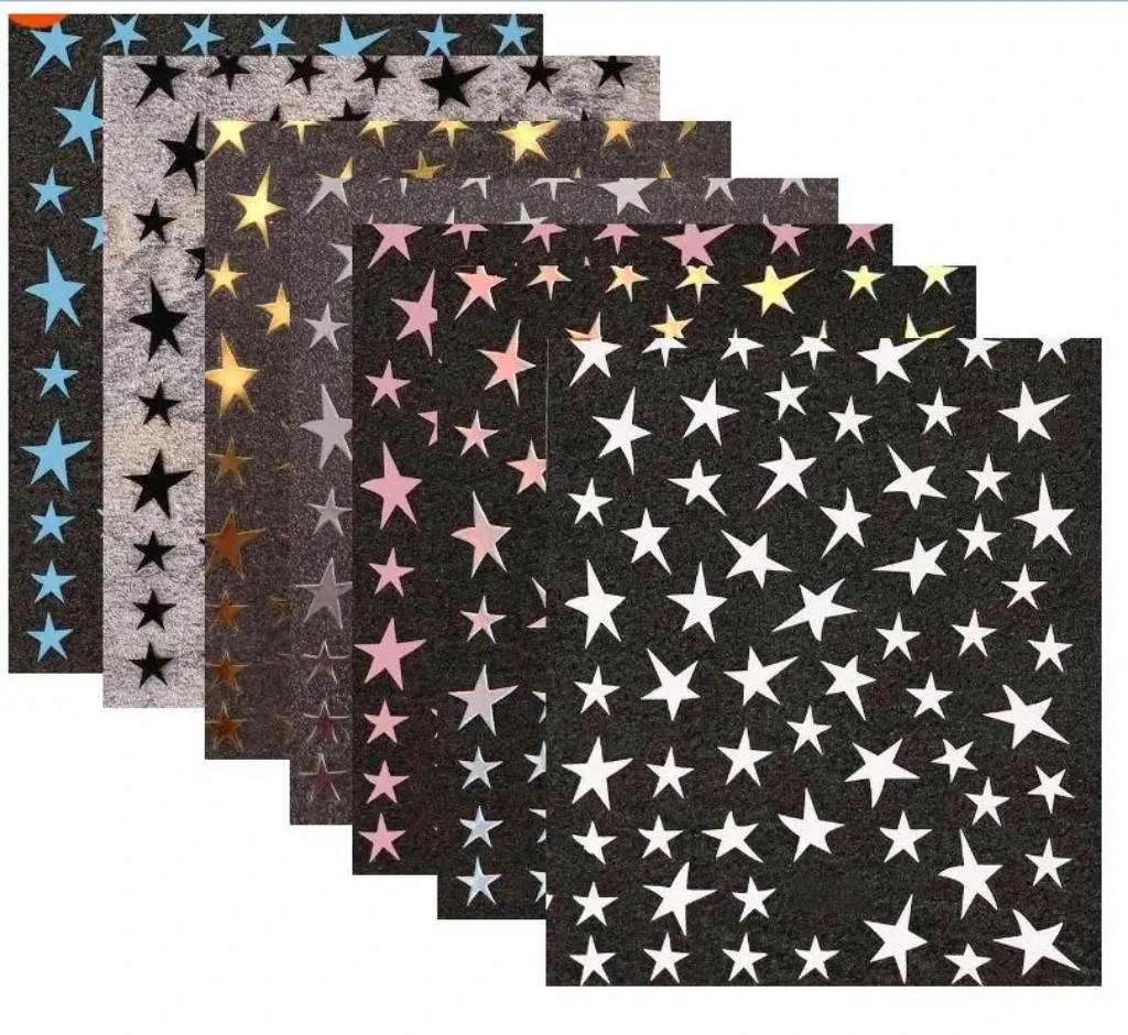 Mix 7 Colourful Stars Nails Stickers Irregular Pentagram Decals Laser Shiny Decor Self-adhesive Decals DIY Manicure Foils Wraps