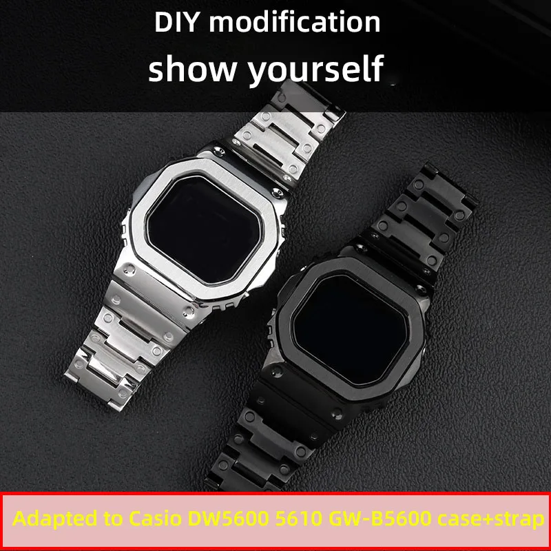 DW5600 metal case+strap for Casio G-SHOCK DW-5600 GW-M5610 GW-B5600 personalized modification DIY set watch parts accessories