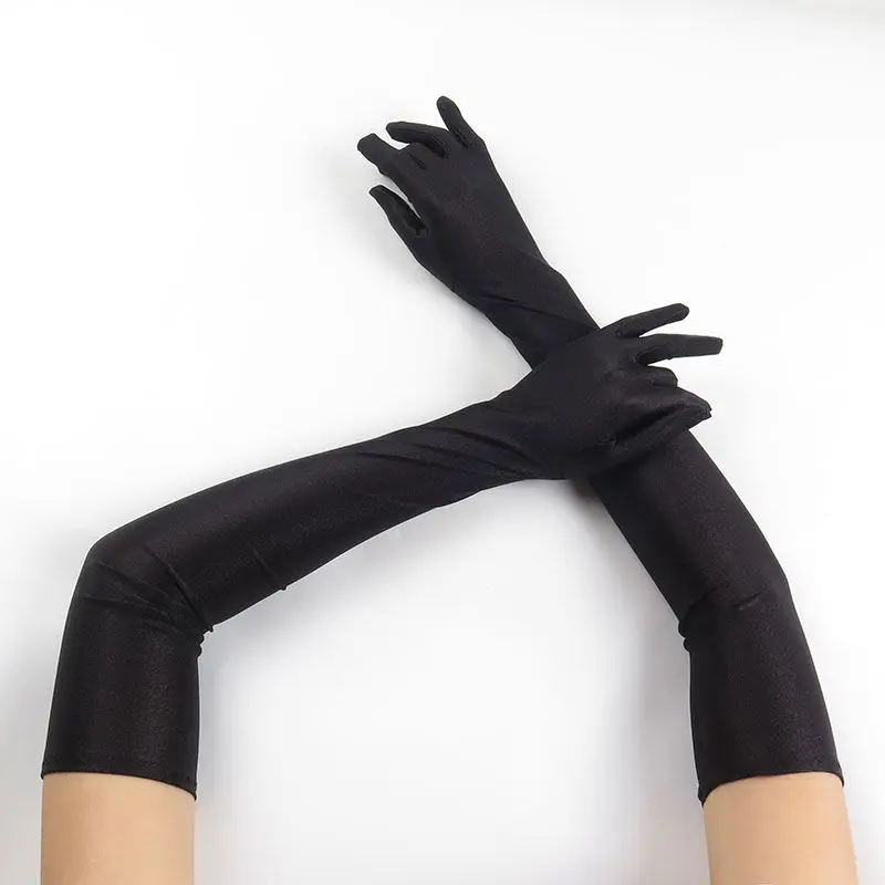 52CM Women Elegant Solid Spandex Thin Soft Stretch Sun Protection Stage Performance Driving Riding Cosplay Party Long Gloves