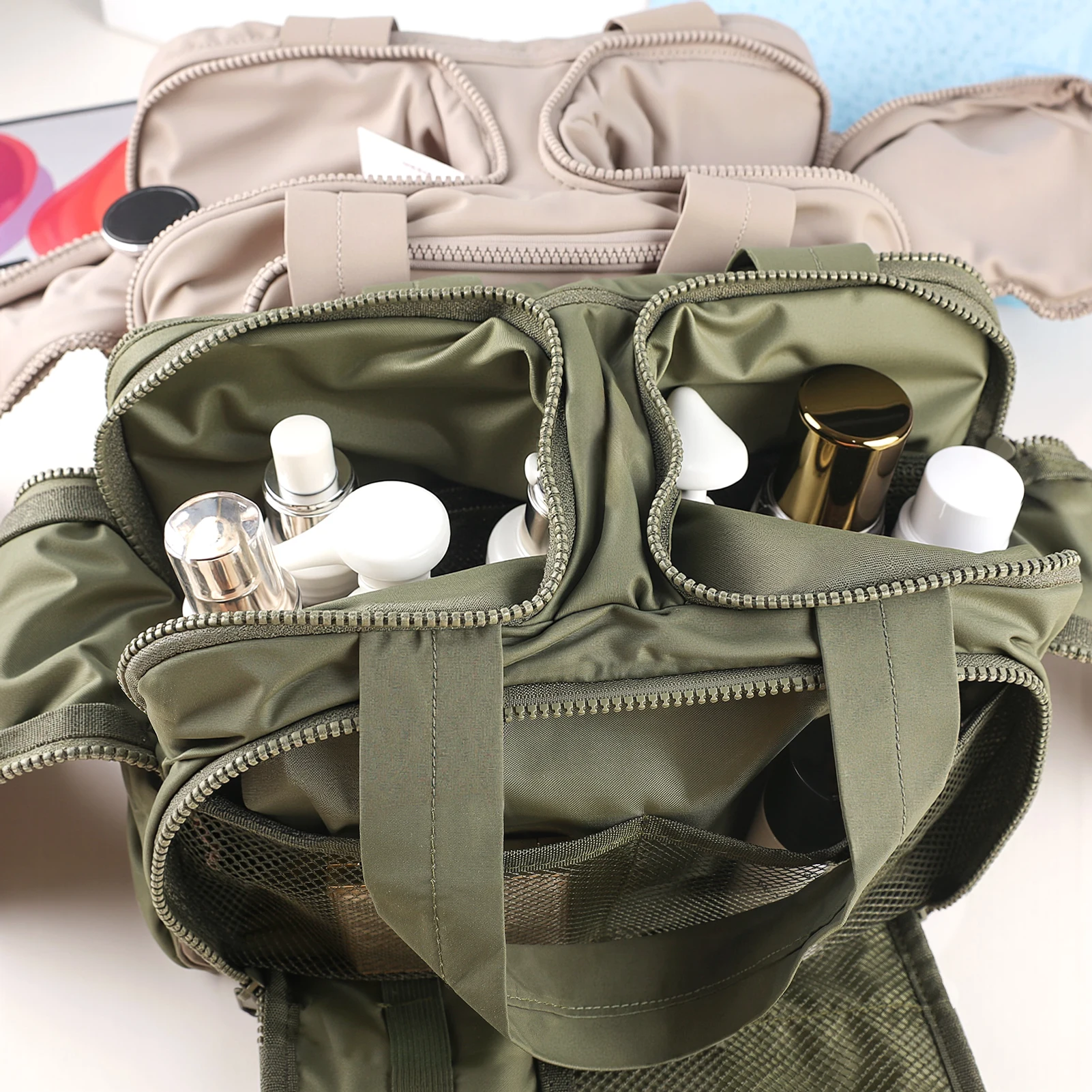 Multi-Opening Quilted Simple and Stylish Solid Color Portable Travel Toiletry and Makeup Bag