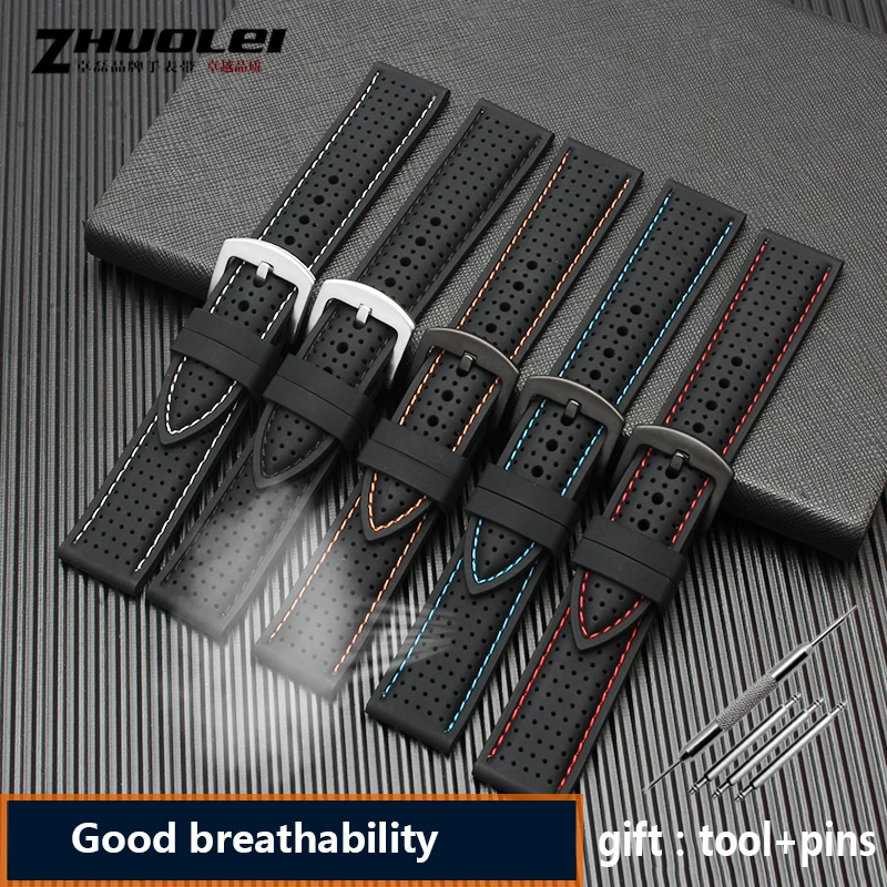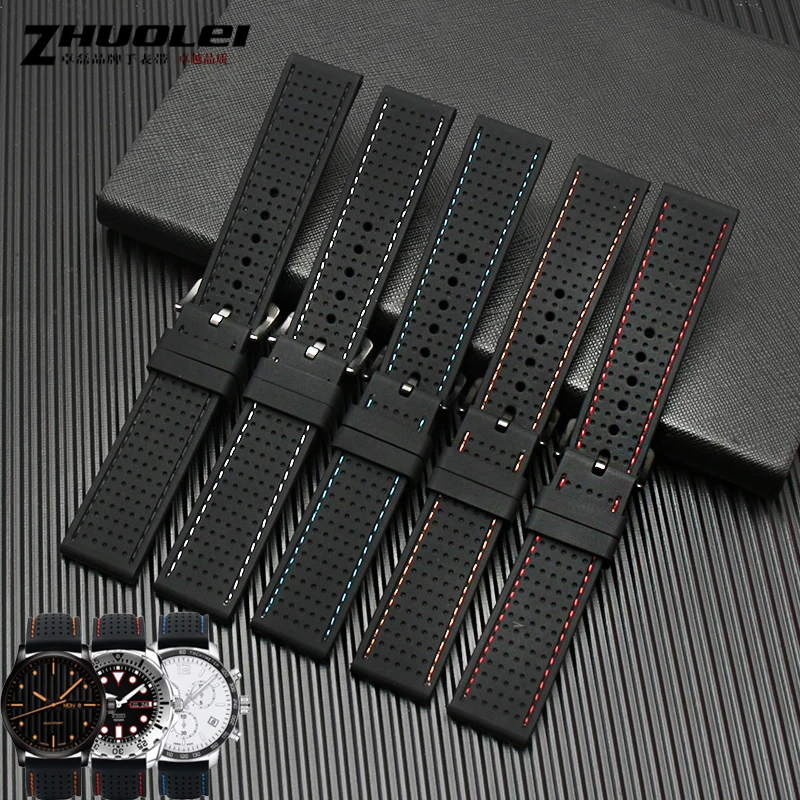 New Breathable Silicone Sports Band for hua-wei Sam-sung watchband 20mm 22mm rubber strap for Mido- T-issot O-mega Accessories