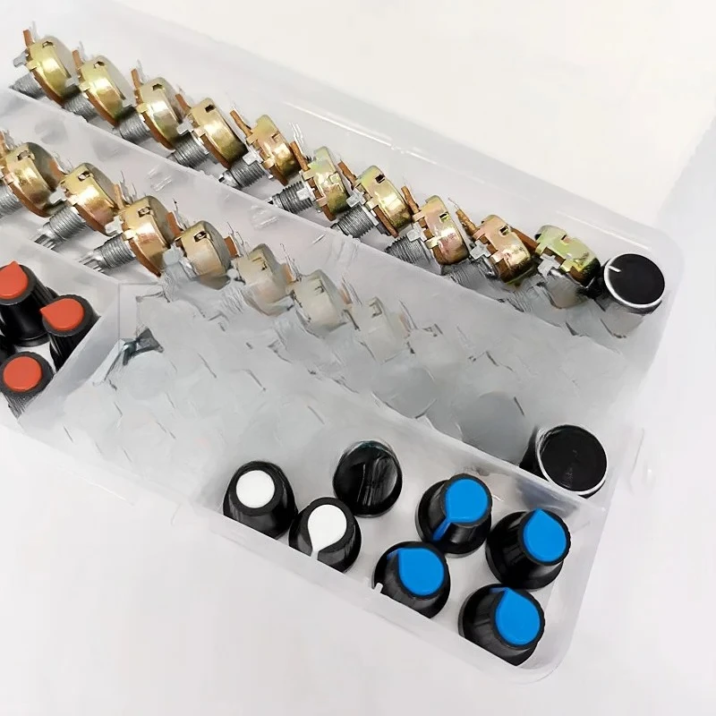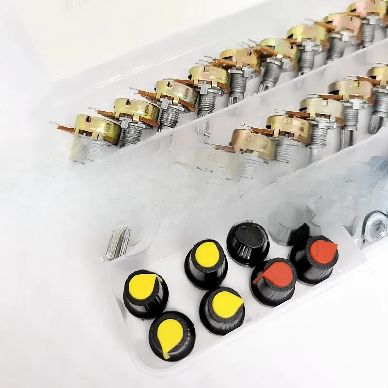 20sets /Box WH148 15MM Single Potentiometer Kit B5K/10K/20K/50K/100K With Knobs Set Shaft Nuts