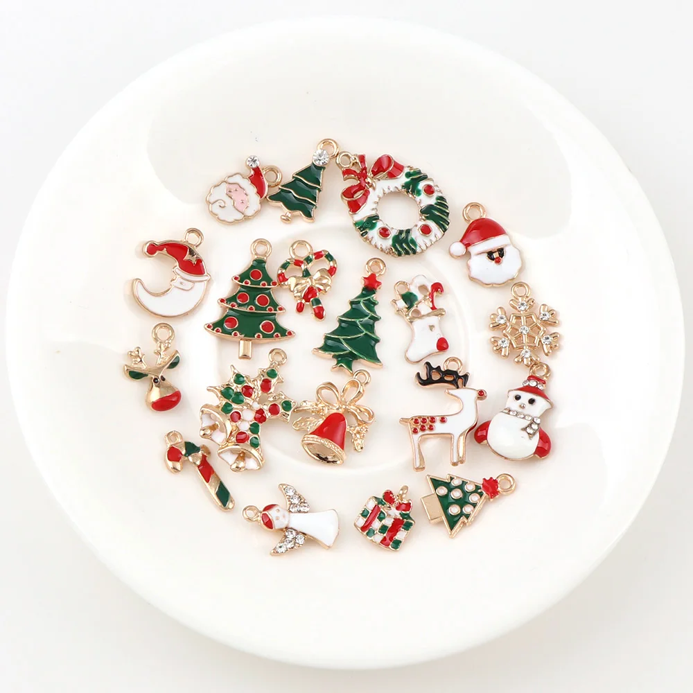 10-50PCS A+ NewYear Fashion Metal Alloy Christmas Charm Decor Set Xmas Pendant Drop Ornaments Hanging Christmas Decoration