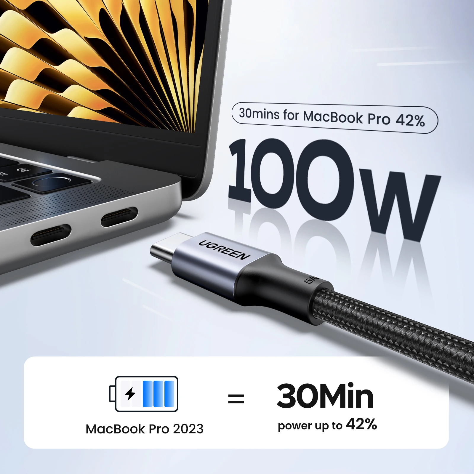 [2 Pack] UGREEN PD100W USB C Cable 5A Type C Fast Charger Cable for Samsung S26 iPhone 17 Laptop MacBook Dell HP QC 4.0 USB Cord
